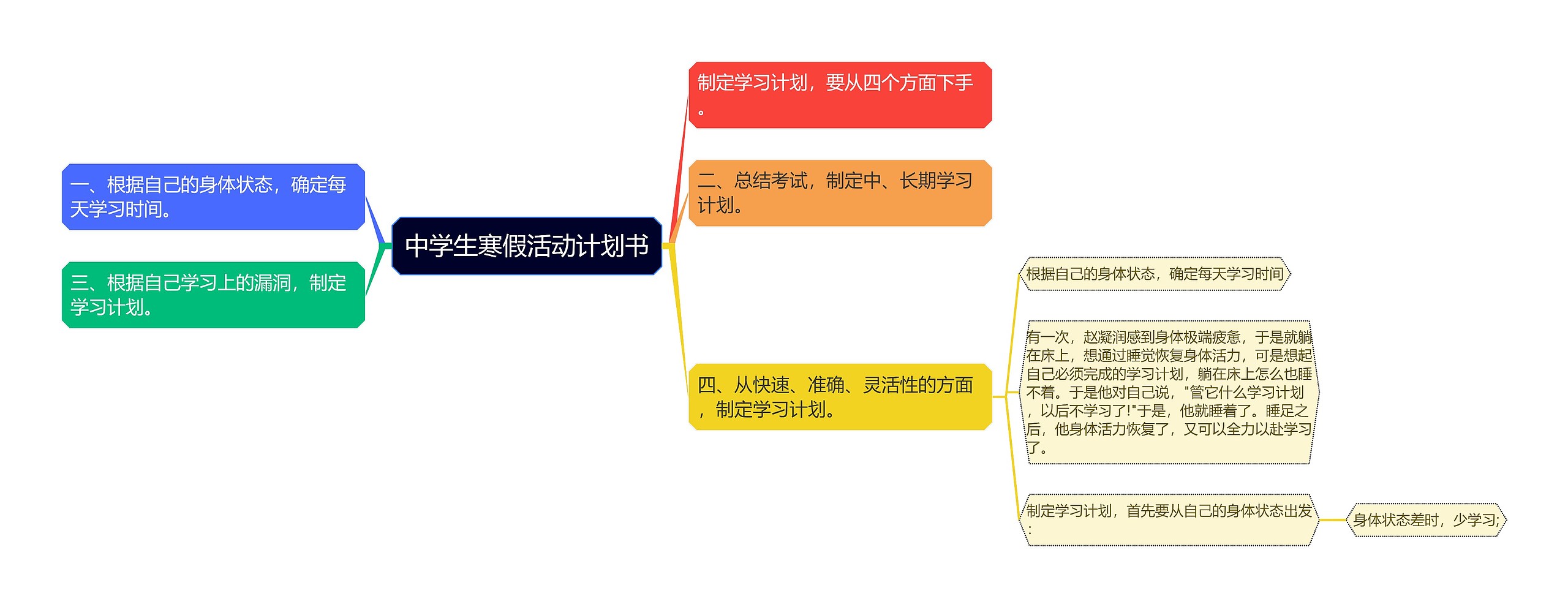 树图思维导图提供《中学生寒假活动计划书》在线思维导图免费制作,点击“编辑”按钮,可对《中学生寒假活动计划书》进行在线思维导图编辑,本思维导图属于思维导图模板主题,文件编号是:f6d86aa94a9d9675136a0456797df911