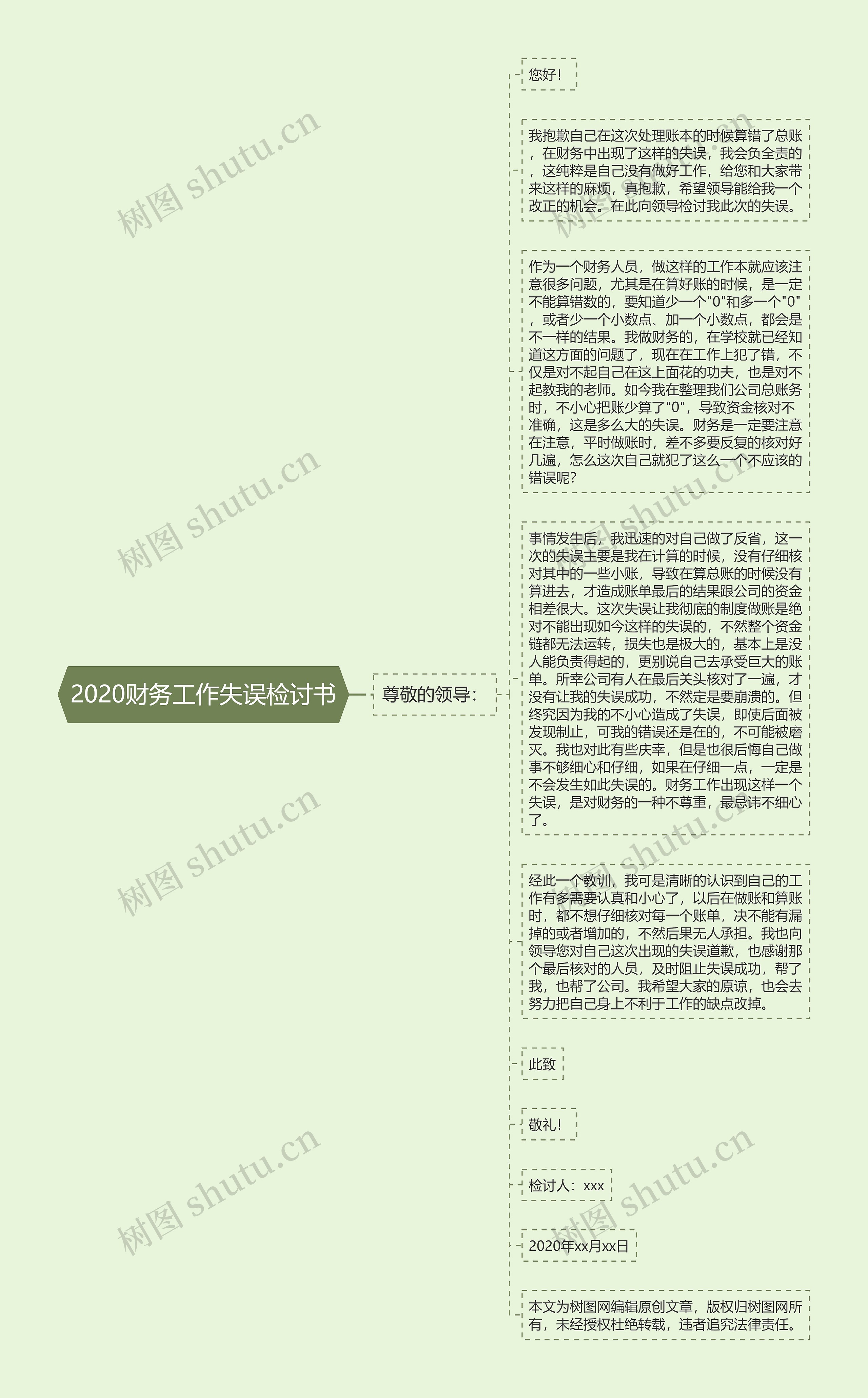 我抱歉自己在这次处理账本的时候算错了总账,在财务中出现了这样的失误,我会负全责的,这纯粹是自己没有做好工作,给您和大家带来这样的麻烦,真抱歉,希望领导能给我一个改正的机会。在此向领导检讨我此次的失误。