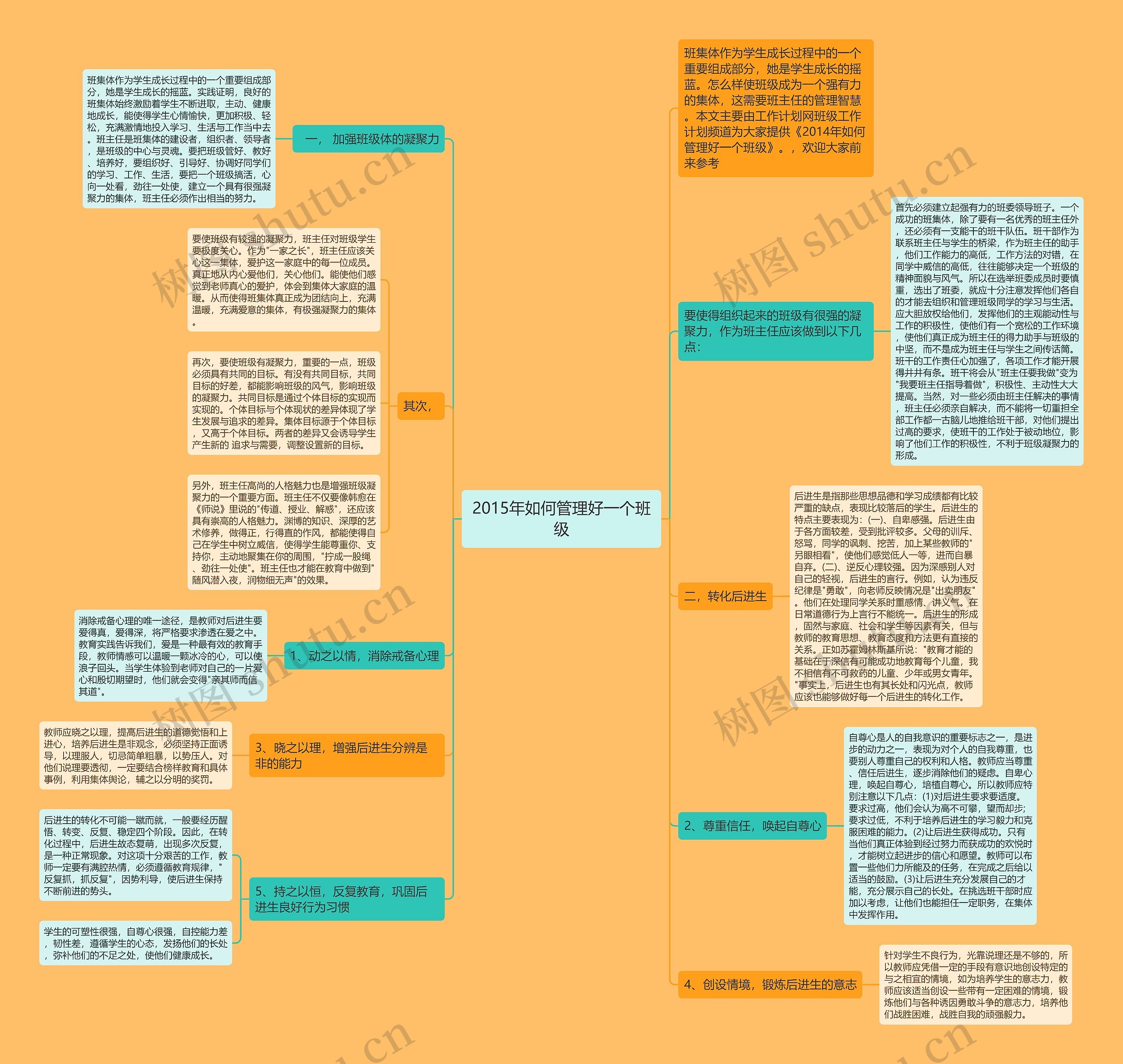树图思维导图提供《2015年如何管理好一个班级》在线思维导图免费制作,点击“编辑”按钮,可对《2015年如何管理好一个班级》进行在线思维导图编辑,本思维导图属于思维导图模板主题,文件编号是:d65541a7fc6d4631be63dd37067e28da