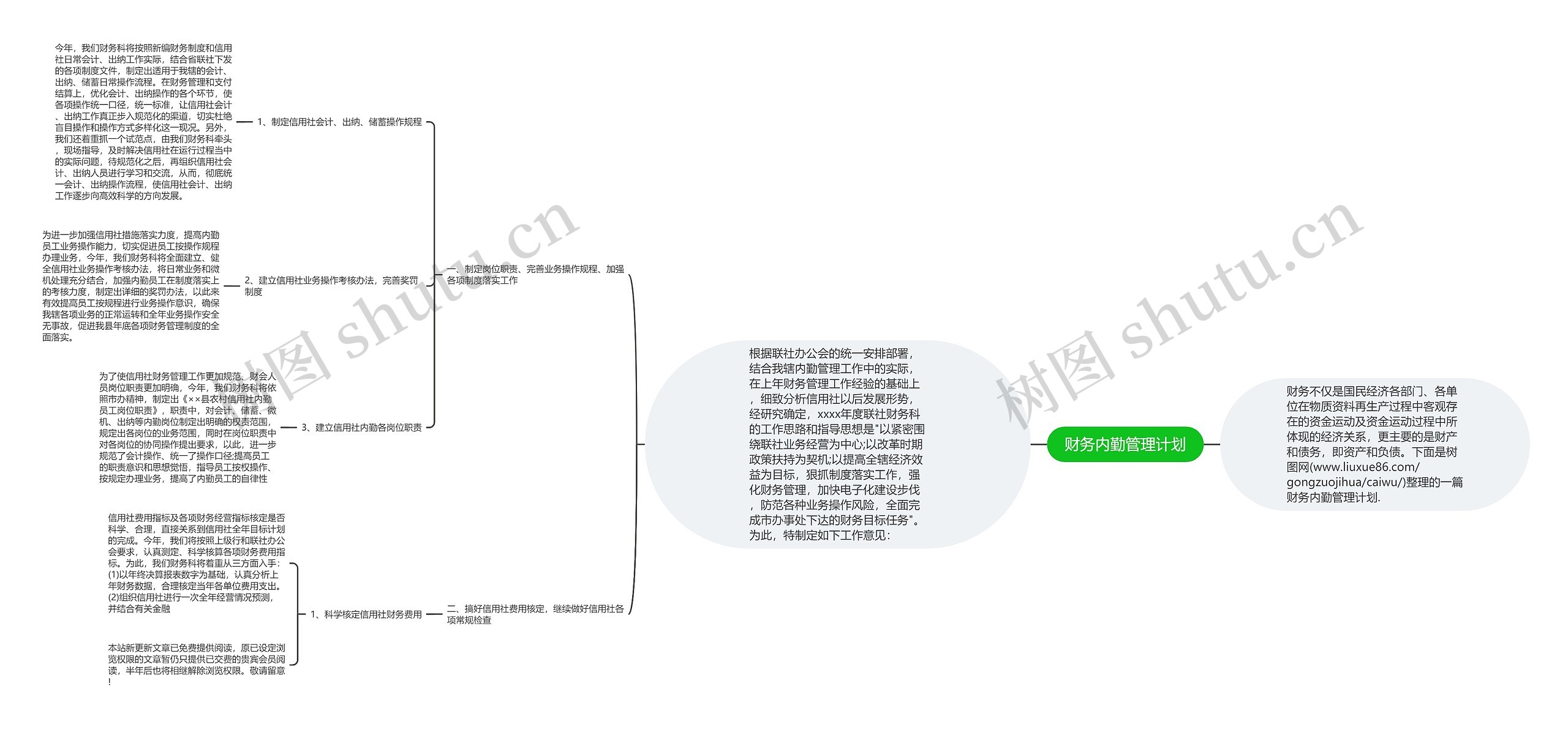 树图思维导图提供《财务内勤管理计划》在线思维导图免费制作,点击“编辑”按钮,可对《财务内勤管理计划》进行在线思维导图编辑,本思维导图属于思维导图模板主题,文件编号是:eb19801418c8081b780f25a92a231e7e