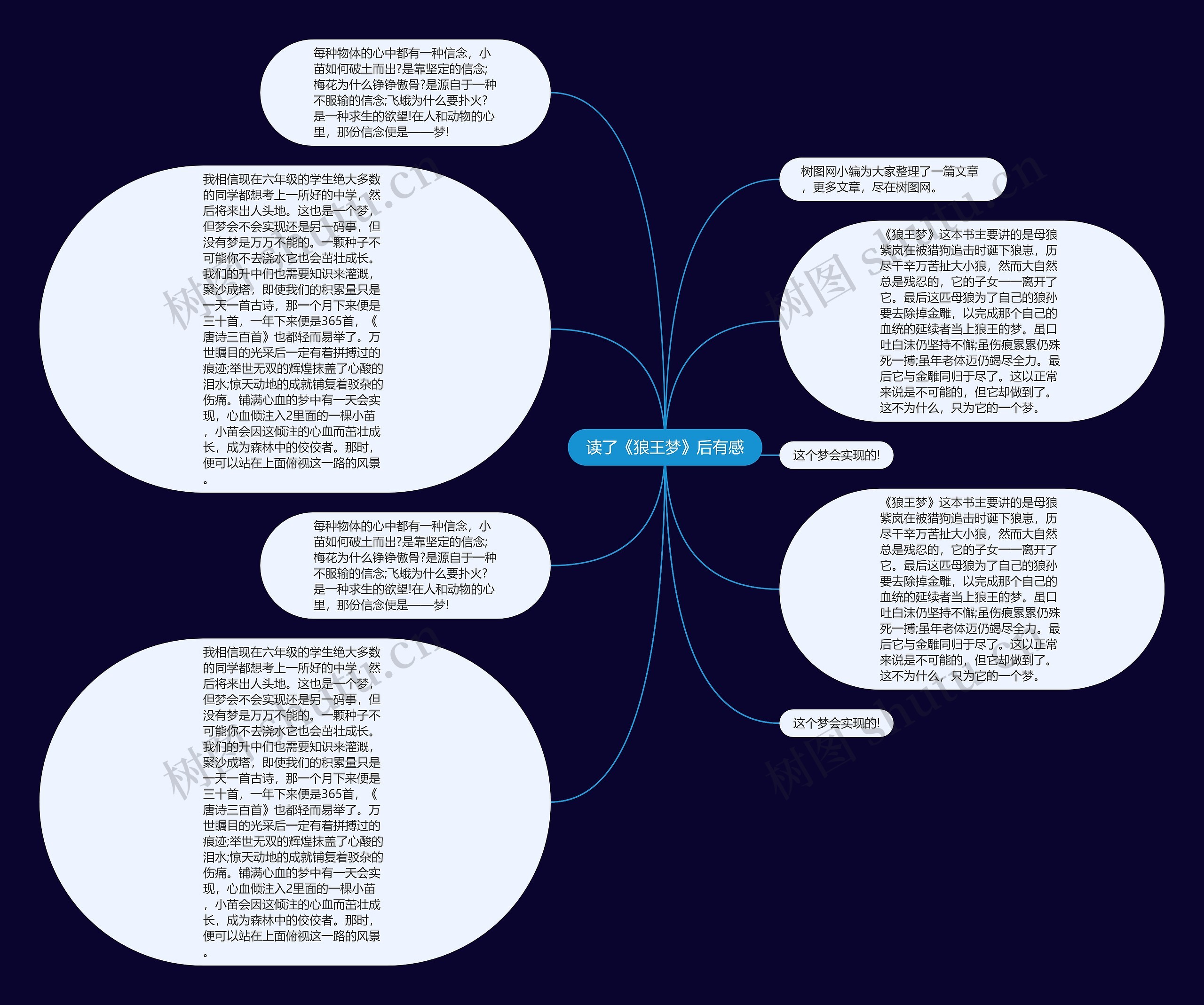《狼王梦》这本书主要讲的是母狼紫岚在被猎狗追击时诞下狼崽,历尽千辛万苦扯大小狼,然而大自然总是残忍的,它的子女一一离开了它。最后这匹母狼为了自己的狼孙要去除掉金雕,以完成那个自己的血统的延续者当上狼王的梦。虽口吐白沫仍坚持不懈;虽伤痕累累仍殊死一搏;虽年老体迈仍竭尽全力。最后它与金雕同归于尽了。这以正常来说是不可能的,但它却做到了。这不为什么,只为它的一个梦。