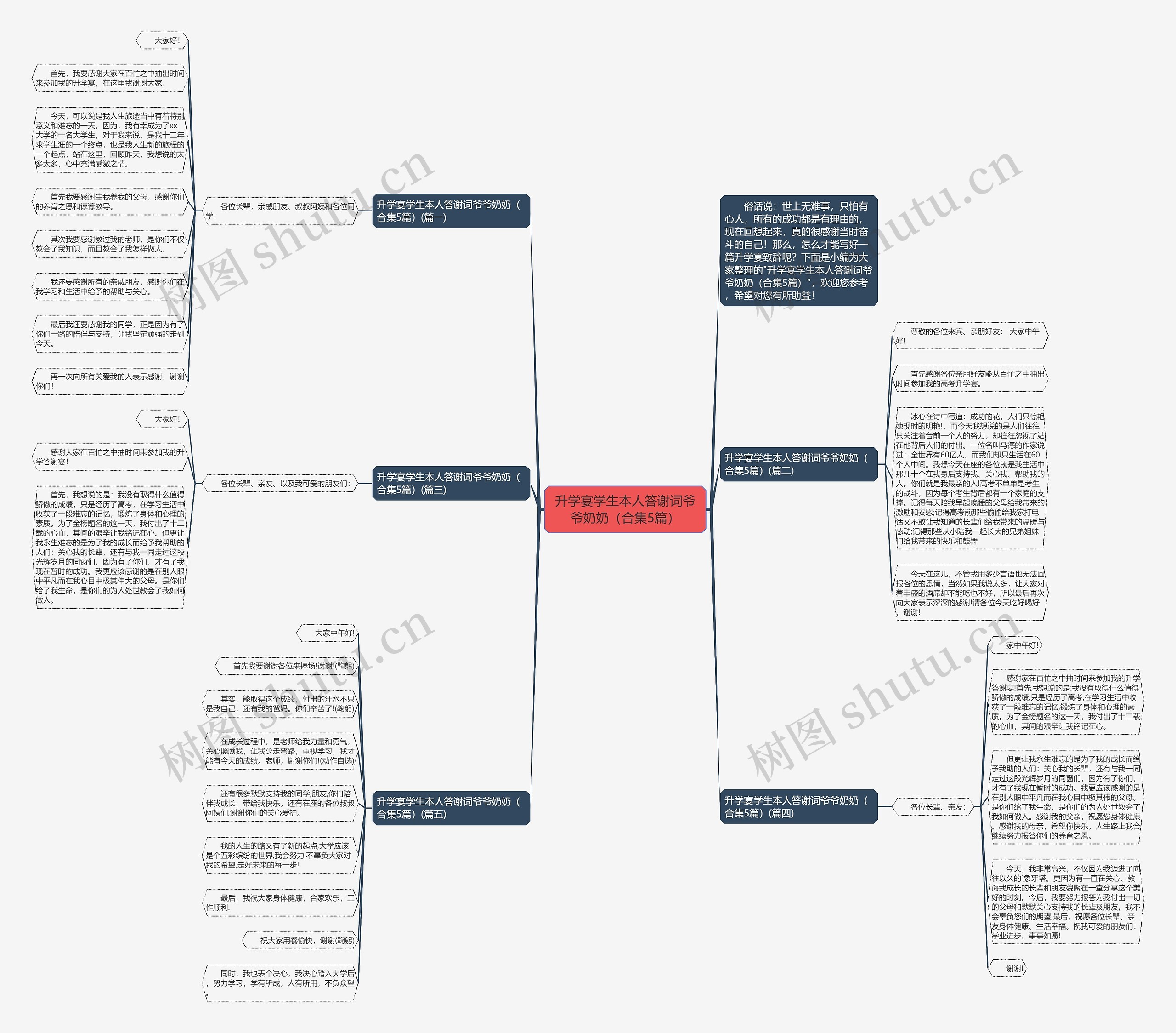 树图思维导图提供《升学宴学生本人答谢词爷爷奶奶(合集5篇)》在线思维导图免费制作,点击“编辑”按钮,可对《升学宴学生本人答谢词爷爷奶奶(合集5篇)》进行在线思维导图编辑,本思维导图属于思维导图模板主题,文件编号是:0d74def54466446289f8cf6b7cf9a344