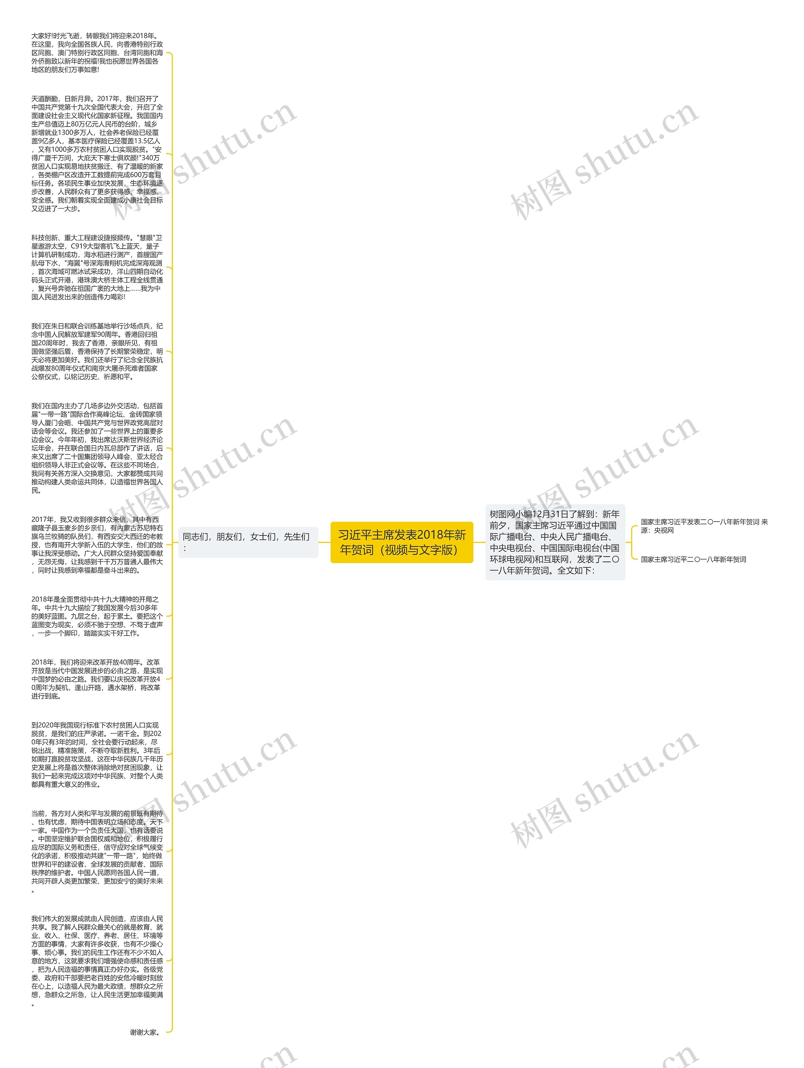 大家好!时光飞逝,转眼我们将迎来2018年。在这里,我向全国各族人民,向香港特别行政区同胞、澳门特别行政区同胞、台湾同胞和海外侨胞致以新年的祝福!我也祝愿世界各国各地区的朋友们万事如意!