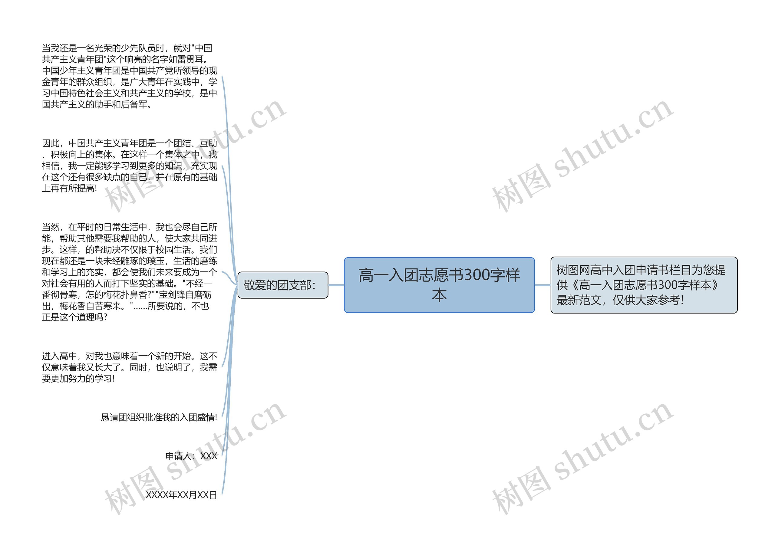 树图思维导图提供《高一入团志愿书300字样本》在线思维导图免费制作,点击“编辑”按钮,可对《高一入团志愿书300字样本》进行在线思维导图编辑,本思维导图属于思维导图模板主题,文件编号是:51b25d010634785b03a4eb69c0438084