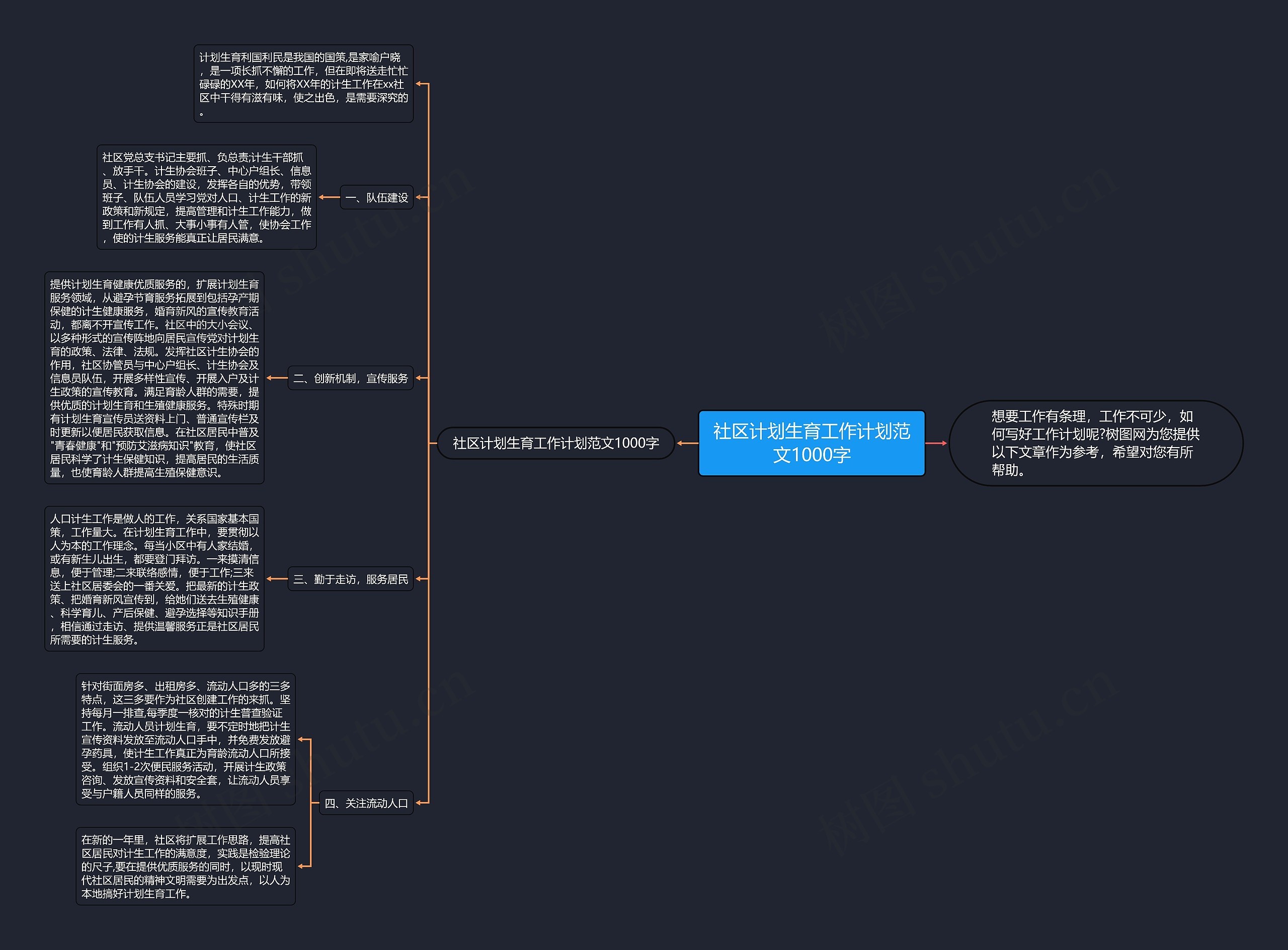树图思维导图提供《社区计划生育工作计划范文1000字》在线思维导图免费制作,点击“编辑”按钮,可对《社区计划生育工作计划范文1000字》进行在线思维导图编辑,本思维导图属于思维导图模板主题,文件编号是:bdfc1846efd43358c320bd9a0b1bc403