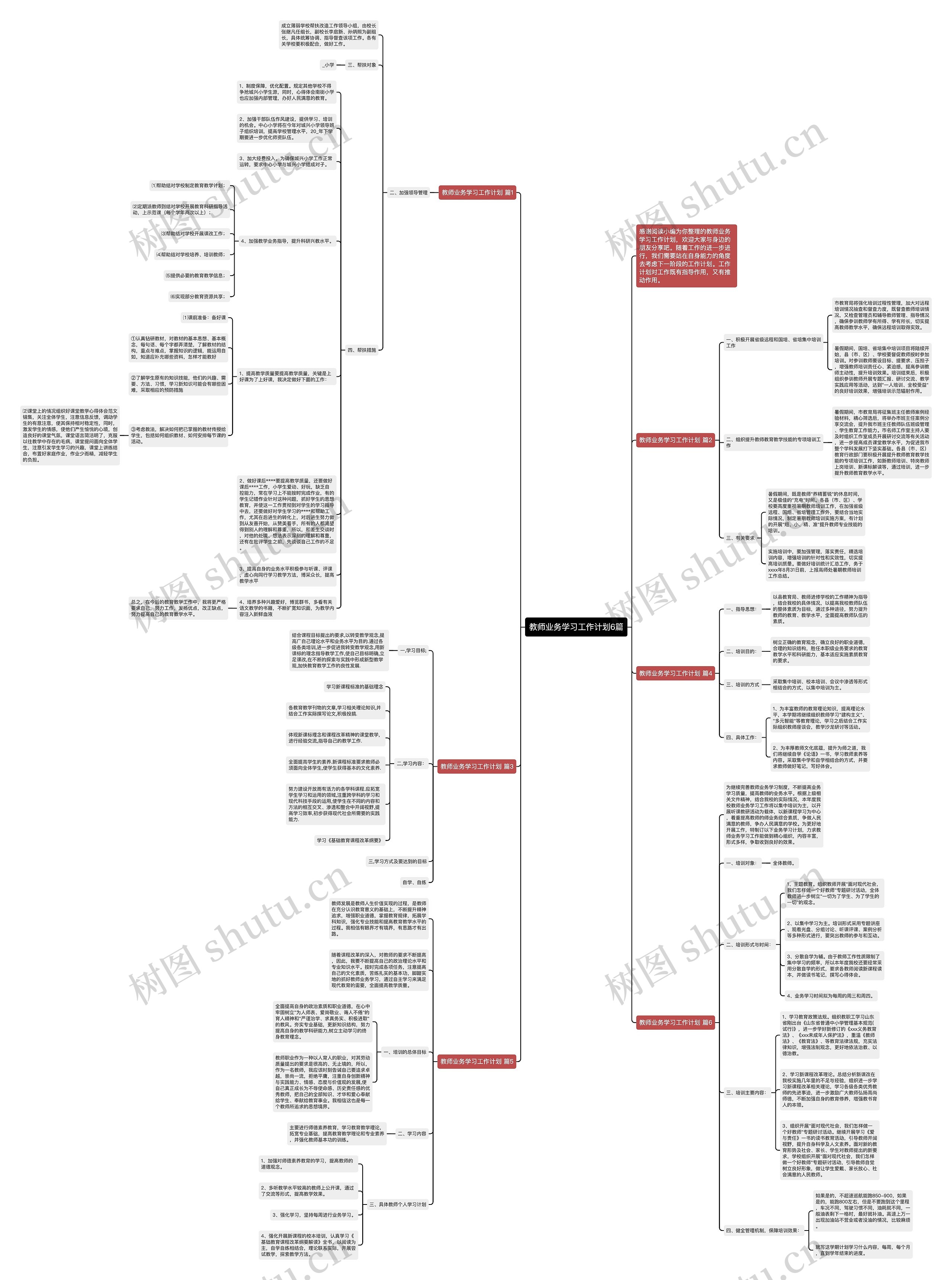 树图思维导图提供《教师业务学习工作计划6篇》在线思维导图免费制作,点击“编辑”按钮,可对《教师业务学习工作计划6篇》进行在线思维导图编辑,本思维导图属于思维导图模板主题,文件编号是:aa9b90276c262d58f802525c3dc3268e