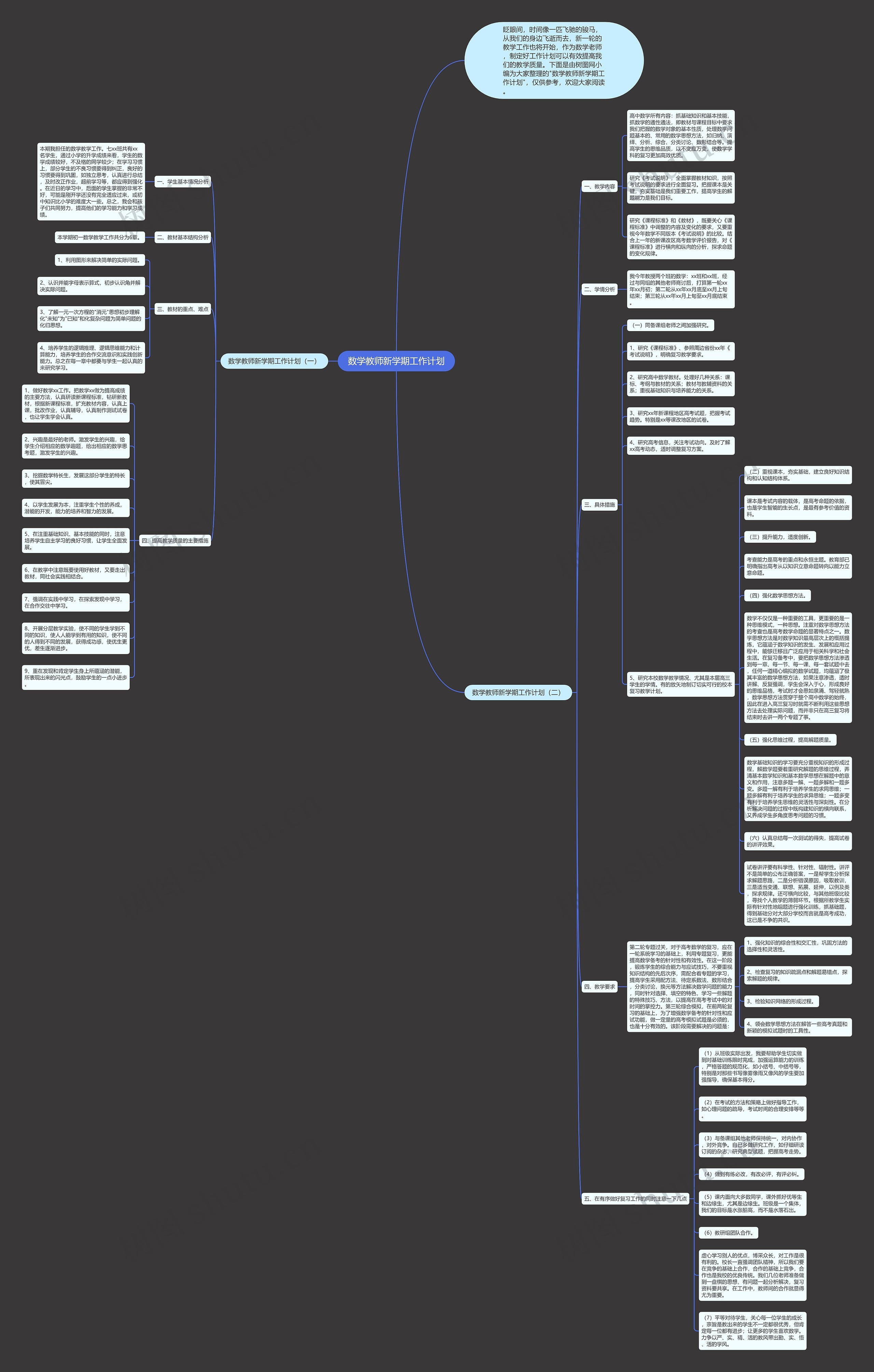 数学教师新学期工作计划思维导图模板大纲,新学期即将开始,数学教师需要制定好工作计划来提高教学质量。首先是分析学生基本情况,了解学生的数学成绩和学习习惯,进行针对性的纠正和巩固,教材基本结构分析是教师需要了解的内容,本学期的数学教学工作分为6章。教材的重点和难点包含利用图形解决实际问题,认识角和解决实际问题,理解一元一次方程的“消元”思想和化归思想,为了提高教学质量,教师需要采取一系列的方法,首先是做好教学准备工作,研读新课程标准,扩充教材内容,认真上课和批改作业。教师还应该激发学生的兴趣,介绍数学趣题和思考题来增加学生的学习兴趣。教师还需要挖掘数学特长生特长,和注重学生的个性养成、潜能开发和智力发展,教师要重视基础知识和基本技能的培养,培养学生自主学习的良好习惯,并结合社会实践进行教学。在教学中,注重实践、探索和合作交流,教师还可以尝试分层教学实验,让不同的学生学到不同的知识,获得成功感,教师要发现和肯定学生潜能,进步,这是一个数学教师在新学期制定工作计划思维导图时需要考虑的知识点。