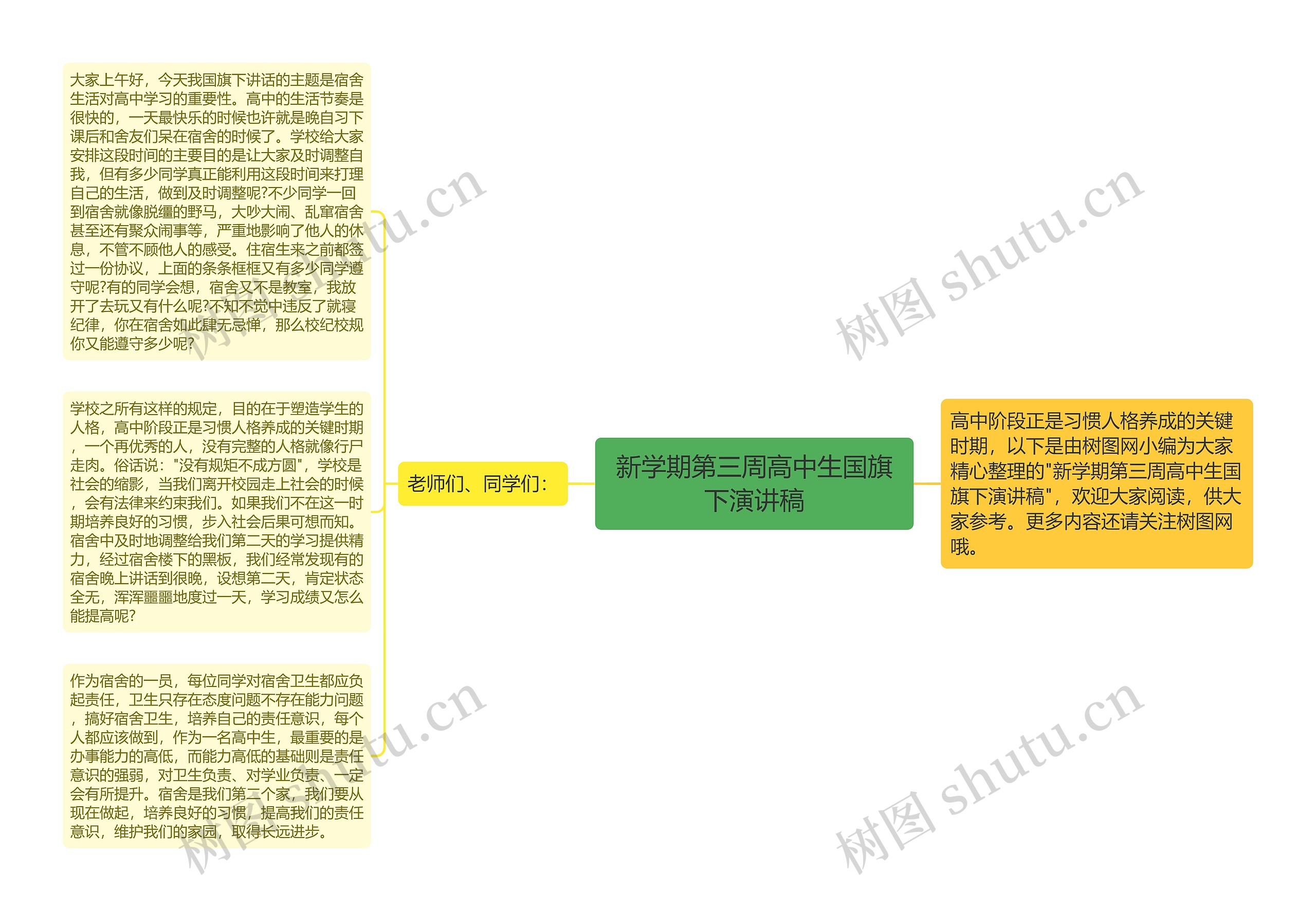 树图思维导图提供《新学期第三周高中生国旗下演讲稿》在线思维导图免费制作,点击“编辑”按钮,可对《新学期第三周高中生国旗下演讲稿》进行在线思维导图编辑,本思维导图属于思维导图模板主题,文件编号是:4d161bbaf6ccd1ea9fee29609b261903