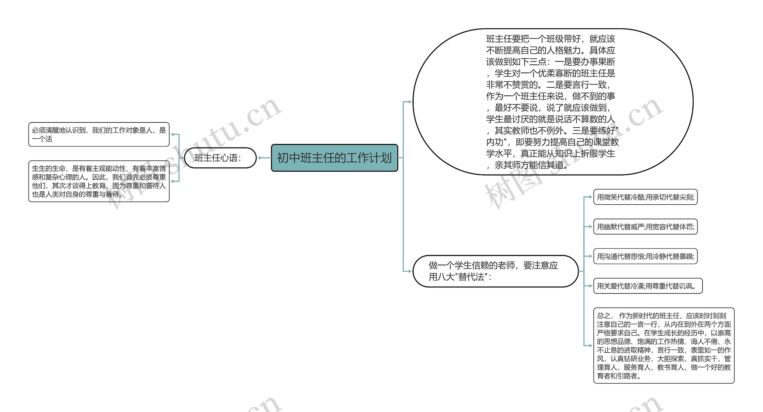 树图思维导图提供《初中班主任的工作计划》在线思维导图免费制作,点击“编辑”按钮,可对《初中班主任的工作计划》进行在线思维导图编辑,本思维导图属于思维导图模板主题,文件编号是:de255ddfb61c3aa851477b1ee0be250e