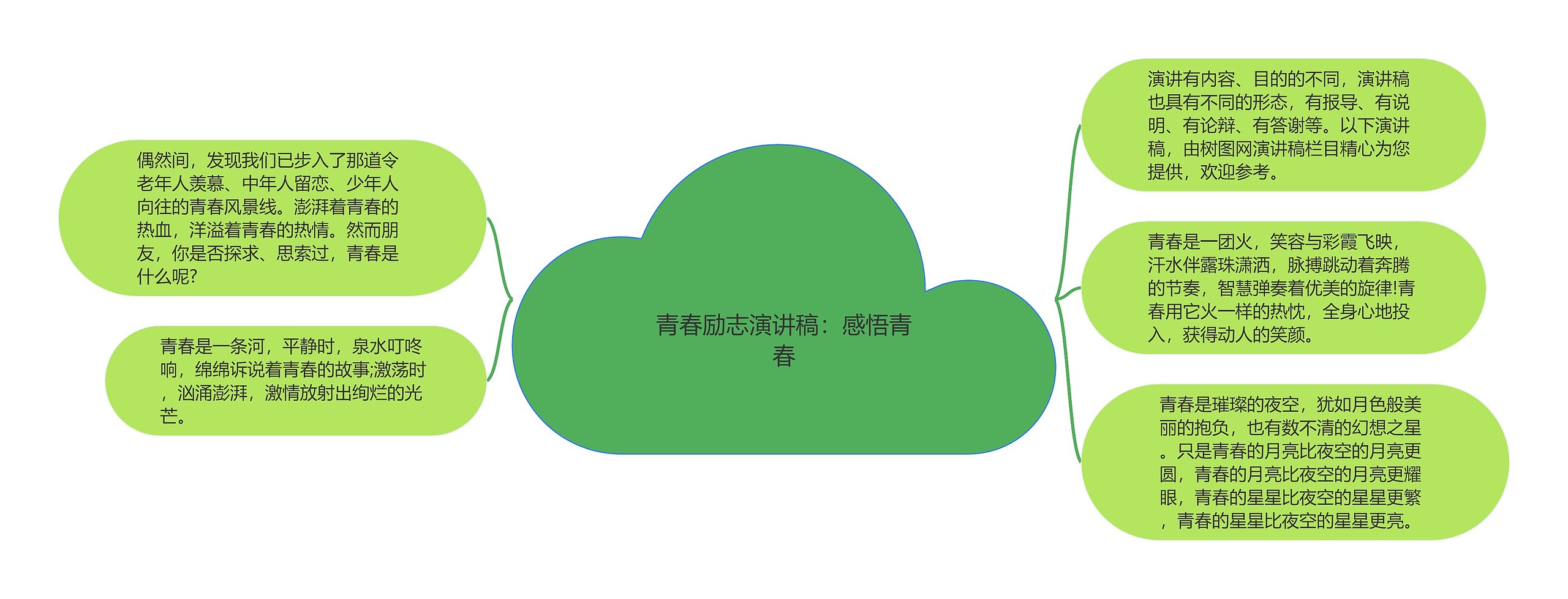 树图思维导图提供《青春励志演讲稿:感悟青春》在线思维导图免费制作,点击“编辑”按钮,可对《青春励志演讲稿:感悟青春》进行在线思维导图编辑,本思维导图属于思维导图模板主题,文件编号是:2250033e4055f6050faeb56b494b475e