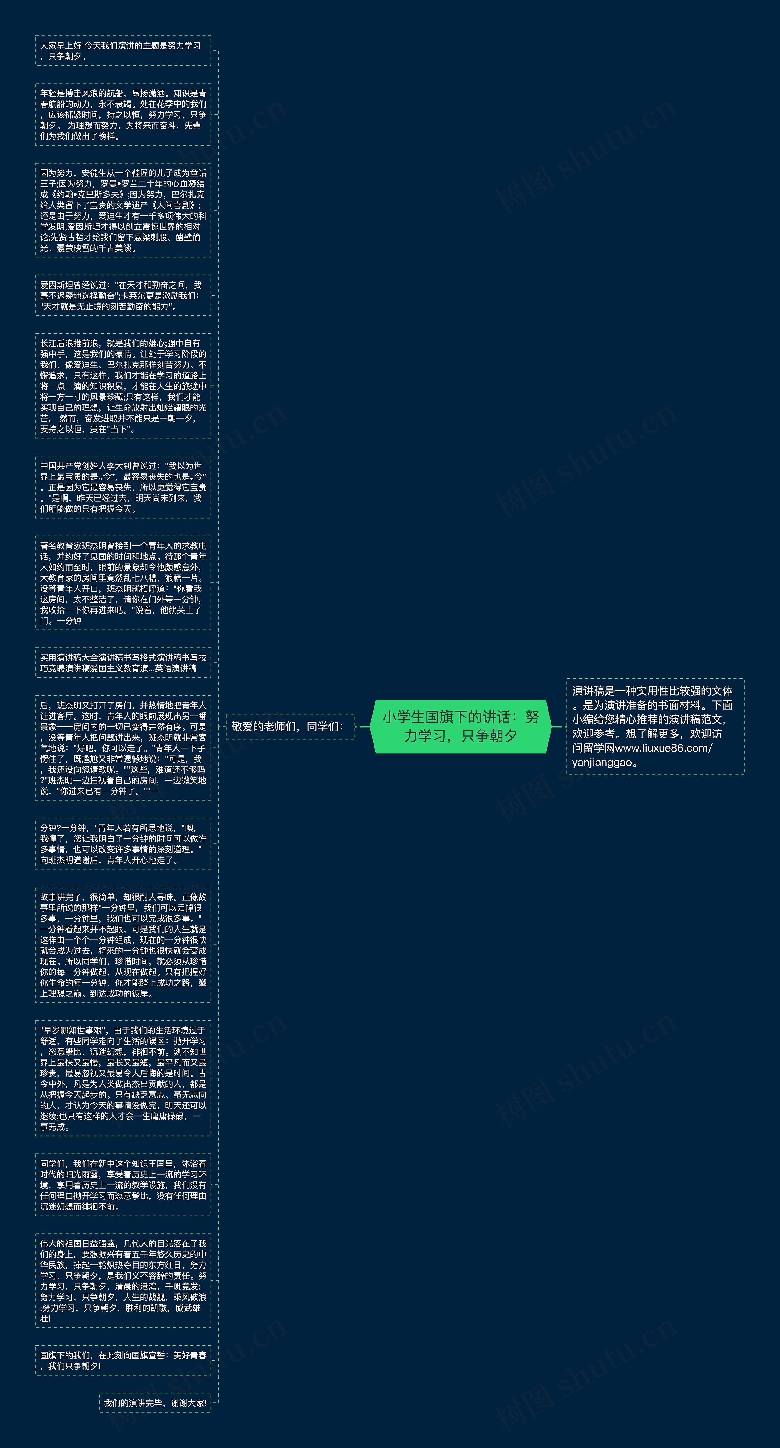 大家早上好!今天我们演讲的主题是努力学习,只争朝夕。