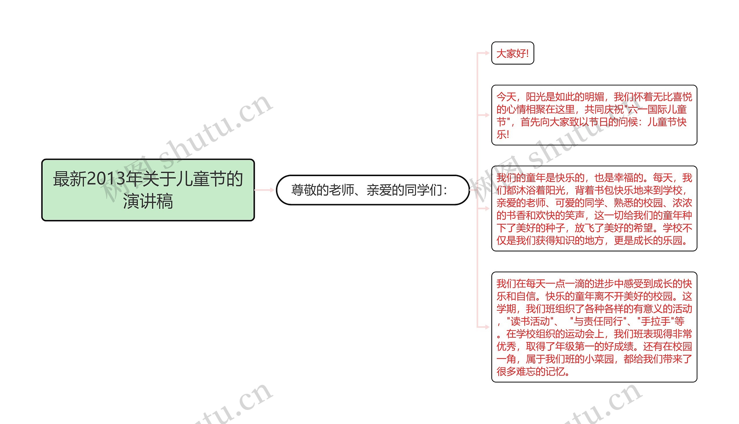 树图思维导图提供《最新2013年关于儿童节的演讲稿》在线思维导图免费制作,点击“编辑”按钮,可对《最新2013年关于儿童节的演讲稿》进行在线思维导图编辑,本思维导图属于思维导图模板主题,文件编号是:4fd9bea234ebdf6dd9c205d8cfc55912