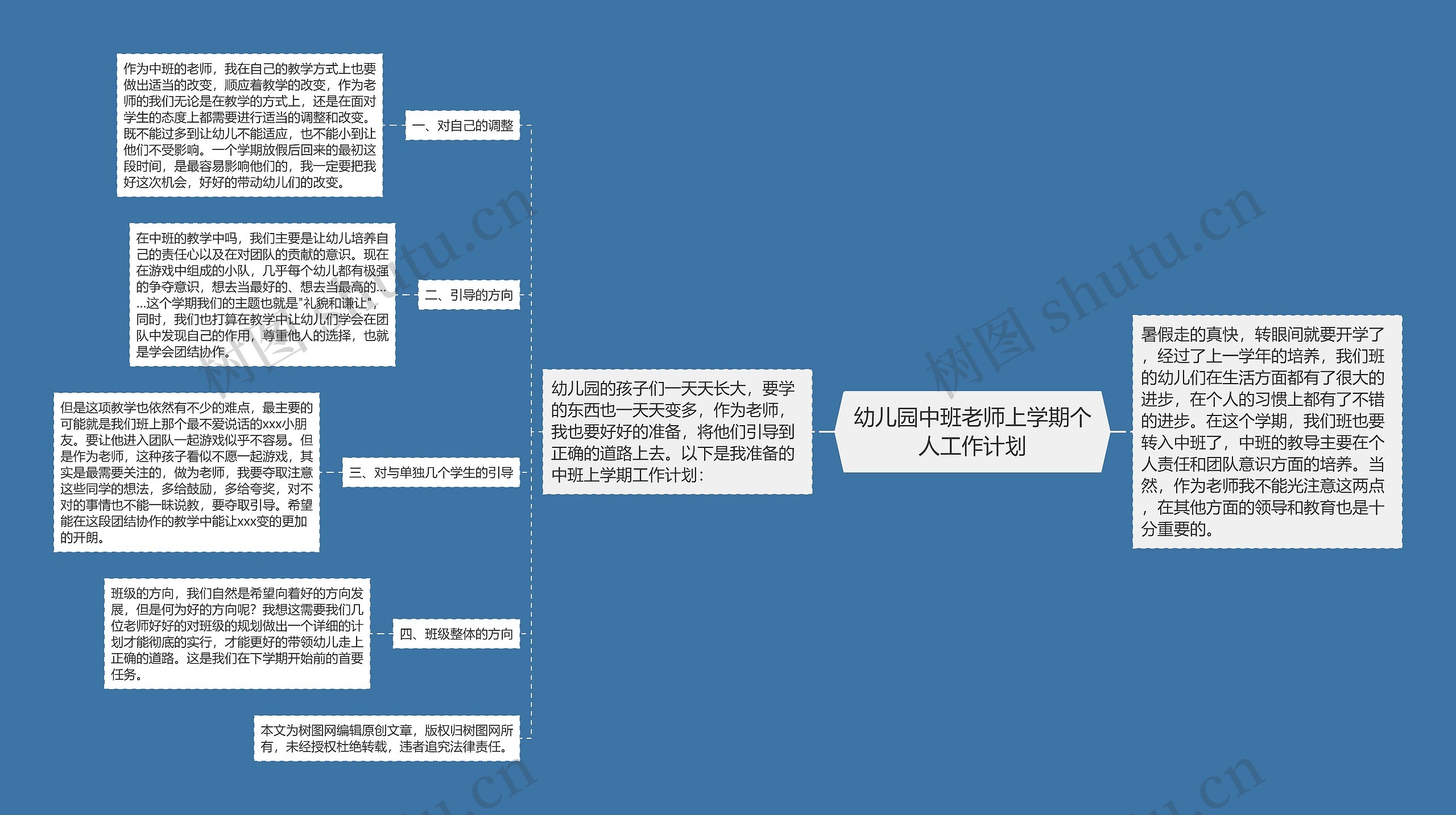 树图思维导图提供《幼儿园中班老师上学期个人工作计划》在线思维导图免费制作,点击“编辑”按钮,可对《幼儿园中班老师上学期个人工作计划》进行在线思维导图编辑,本思维导图属于思维导图模板主题,文件编号是:9fb9197ba74455a01ab8f7b4aa643848