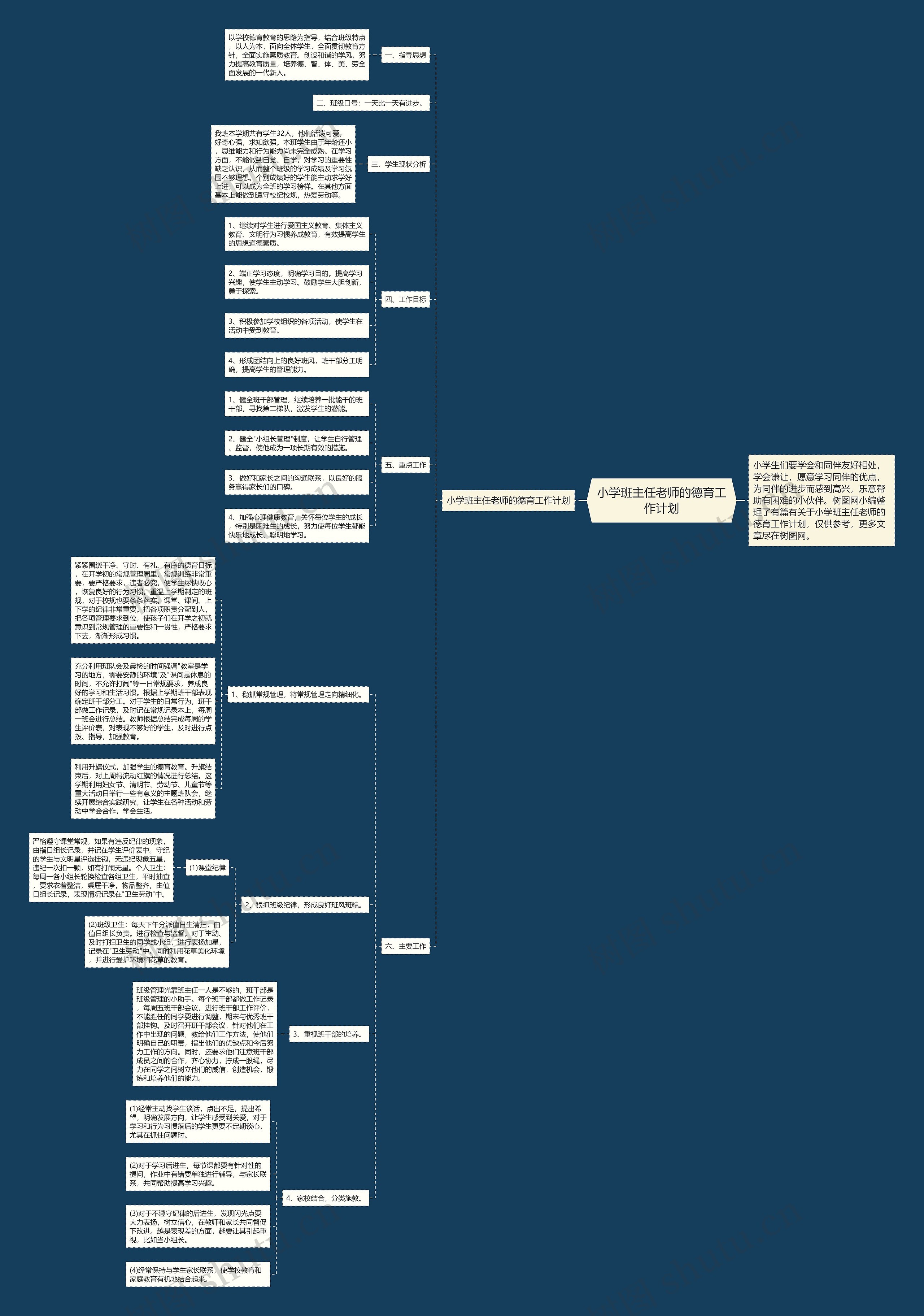 树图思维导图提供《小学班主任老师的德育工作计划》在线思维导图免费制作,点击“编辑”按钮,可对《小学班主任老师的德育工作计划》进行在线思维导图编辑,本思维导图属于思维导图模板主题,文件编号是:91a7e65894e51d649b988d195f222da1