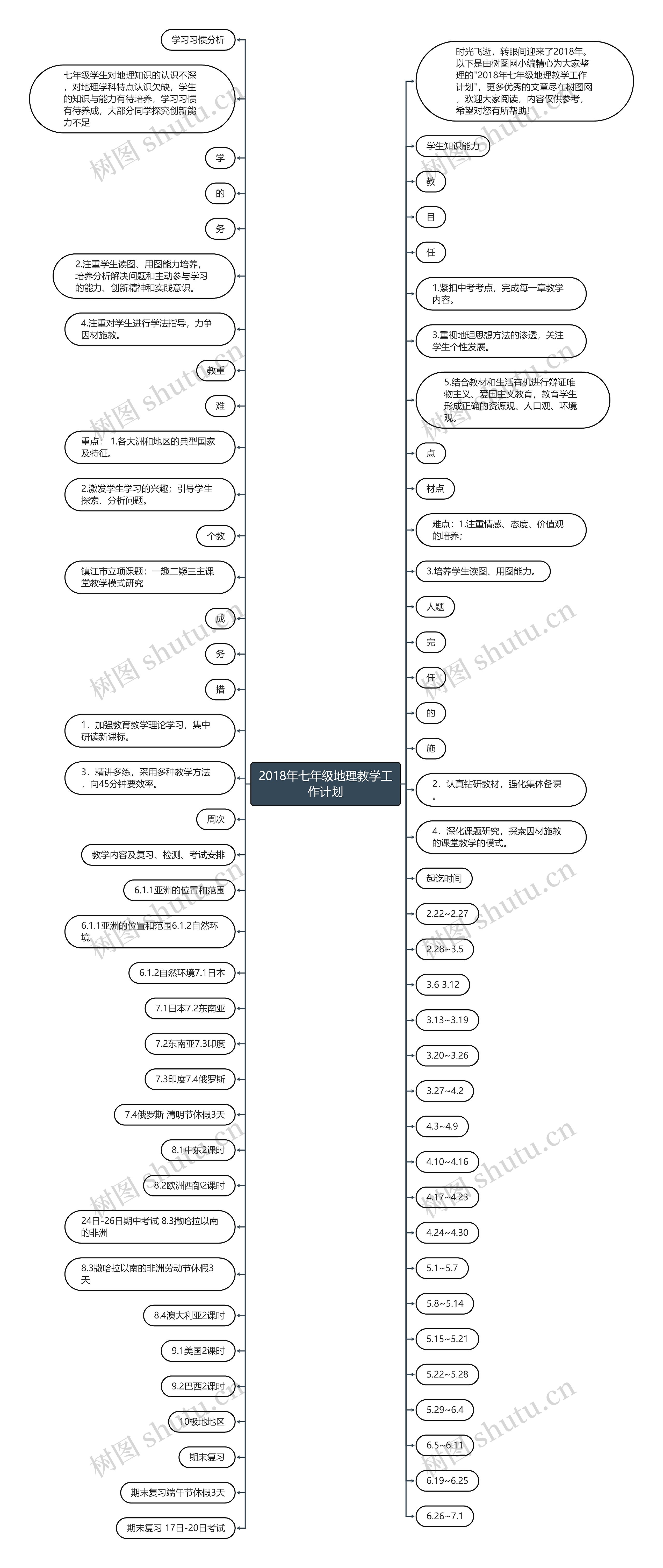树图思维导图提供《2018年七年级地理教学工作计划》在线思维导图免费制作,点击“编辑”按钮,可对《2018年七年级地理教学工作计划》进行在线思维导图编辑,本思维导图属于思维导图模板主题,文件编号是:910fee7c7b4779d3af3e711b6e88dea6