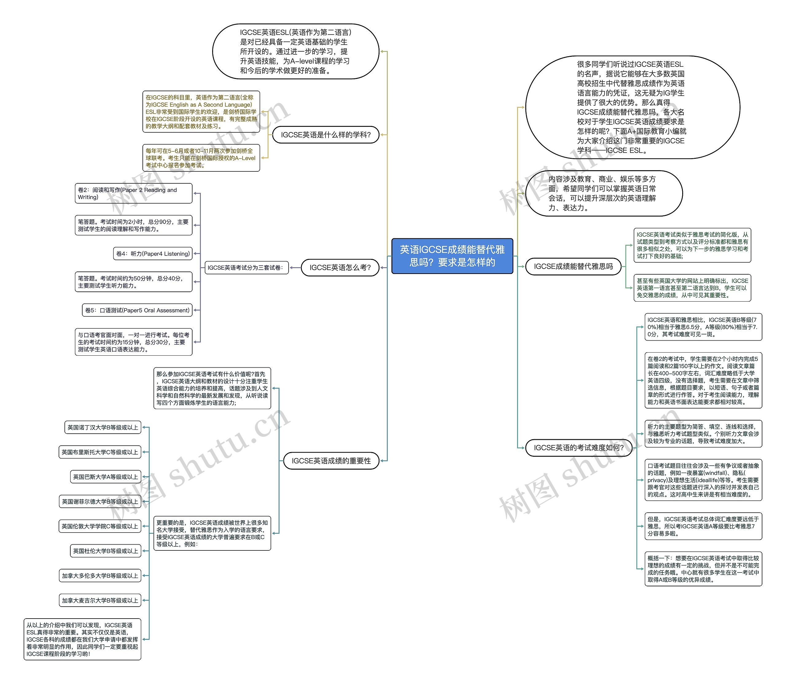 树图思维导图提供《英语IGCSE成绩能替代雅思吗?要求是怎样的》在线思维导图免费制作,点击“编辑”按钮,可对《英语IGCSE成绩能替代雅思吗?要求是怎样的》进行在线思维导图编辑,本思维导图属于思维导图模板主题,文件编号是:e1cf7a90a5998e18799e99d3b4315e5b