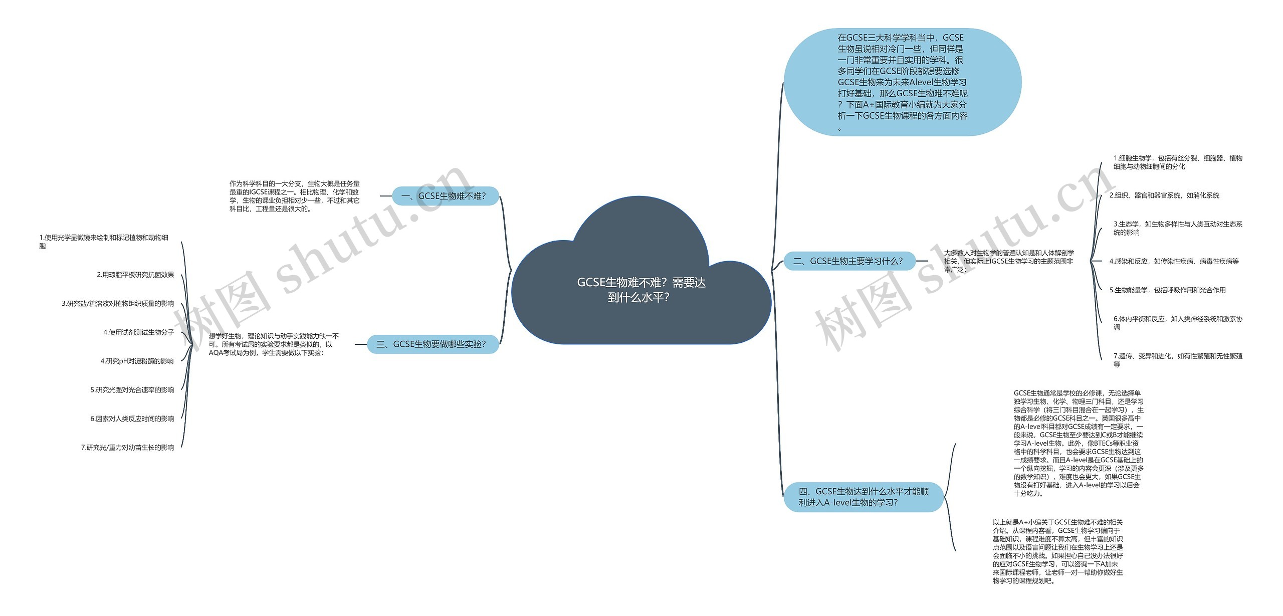 树图思维导图提供《GCSE生物难不难?需要达到什么水平?》在线思维导图免费制作,点击“编辑”按钮,可对《GCSE生物难不难?需要达到什么水平?》进行在线思维导图编辑,本思维导图属于思维导图模板主题,文件编号是:a6e089448f12431422c2cb91304d7f56