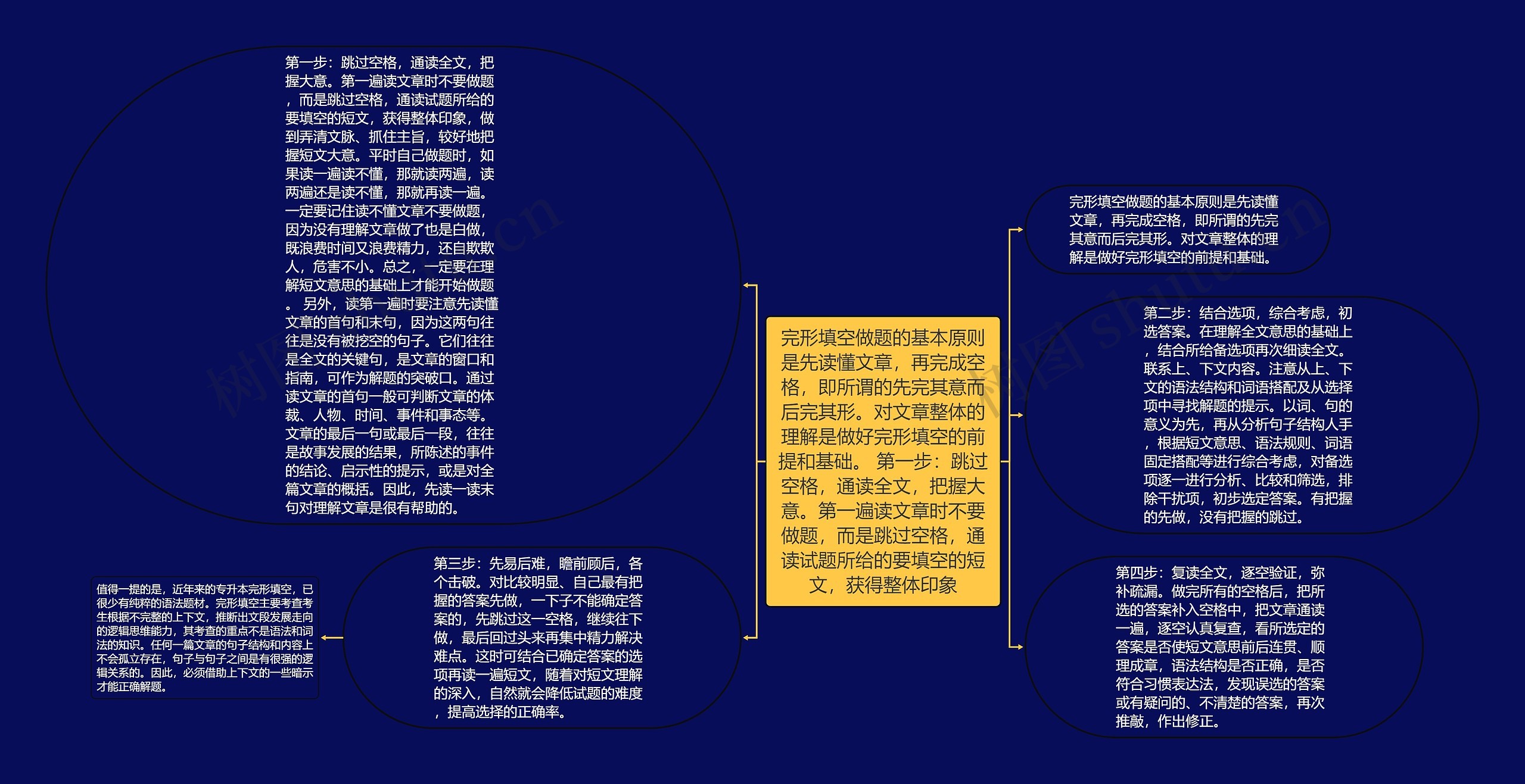 完形填空做题的基本原则是先读懂文章,再完成空格,即所谓的先完其意而后完其形。对文章整体的理解是做好完形填空的前提和基础。