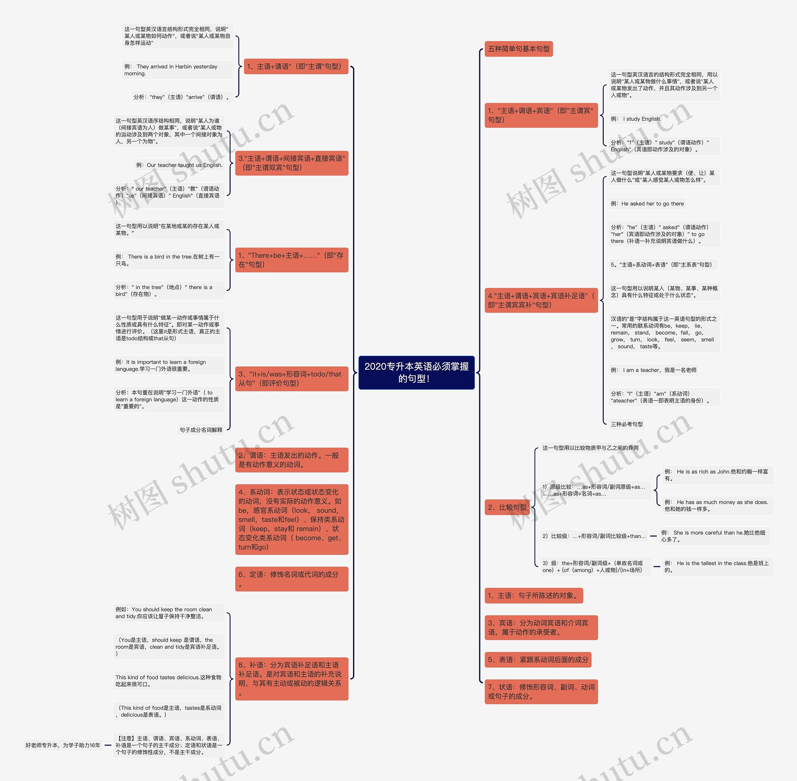 【注意】主语、谓语、宾语、系动词、表语、补语是一个句子的主干成分;定语和状语是一个句子的修饰性成分,不是主干成分。
