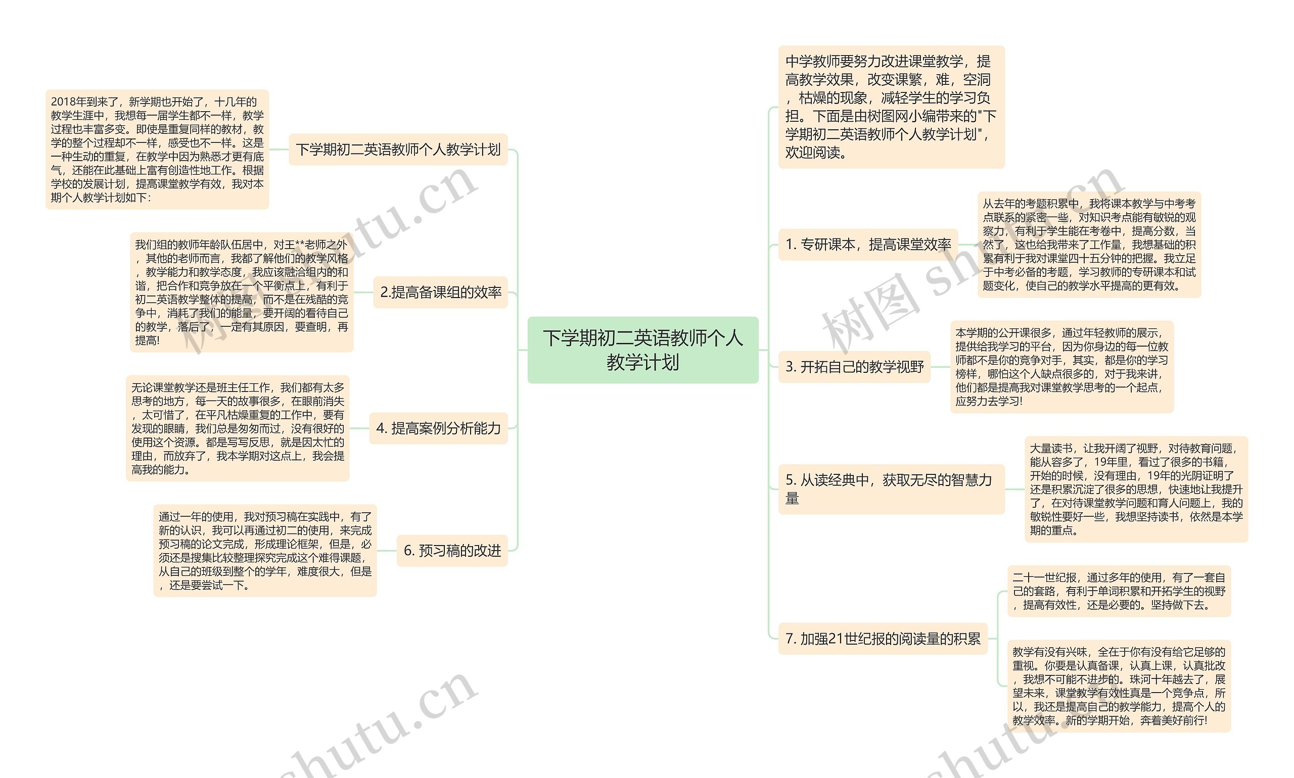 树图思维导图提供《下学期初二英语教师个人教学计划》在线思维导图免费制作,点击“编辑”按钮,可对《下学期初二英语教师个人教学计划》进行在线思维导图编辑,本思维导图属于思维导图模板主题,文件编号是:1f759d401ec41c196686d81296f6e8b1