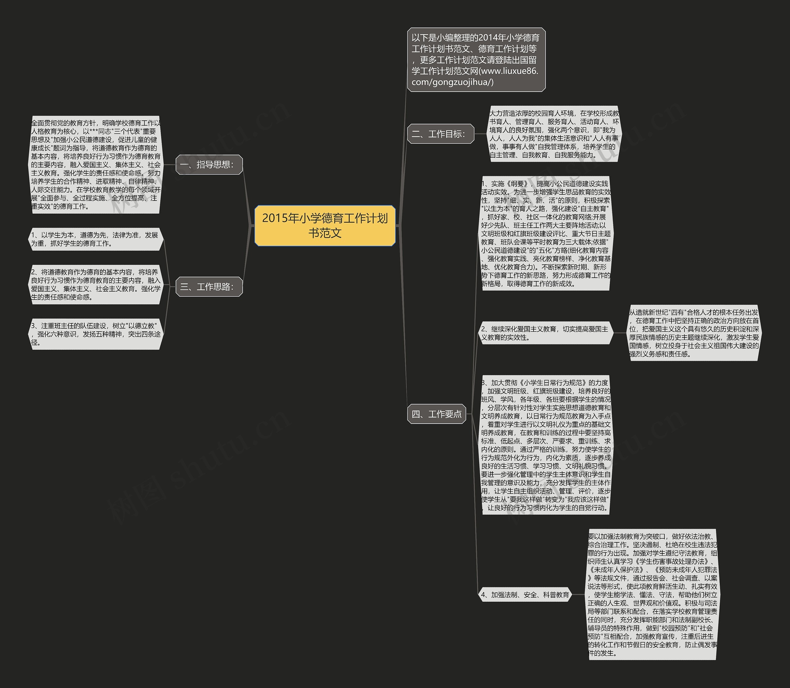 树图思维导图提供《2015年小学德育工作计划书范文》在线思维导图免费制作,点击“编辑”按钮,可对《2015年小学德育工作计划书范文》进行在线思维导图编辑,本思维导图属于思维导图模板主题,文件编号是:59c3cd1188ace9d8f35fad38621087ad