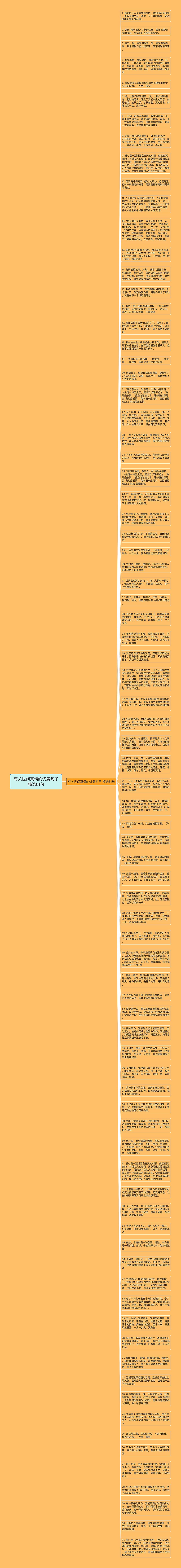 81. 爱心是一股撞开冰闸的春水,使铁石心肠受到震撼;爱心是一座亮在黑夜的灯塔,使迷途航船找到港湾;爱心是一柄撑起在雨夜的小伞,使漂泊异乡的人得到亲情的荫庇;爱心是一道飞架在天边的彩虹,使满目阴霾的人见到世界的美丽。