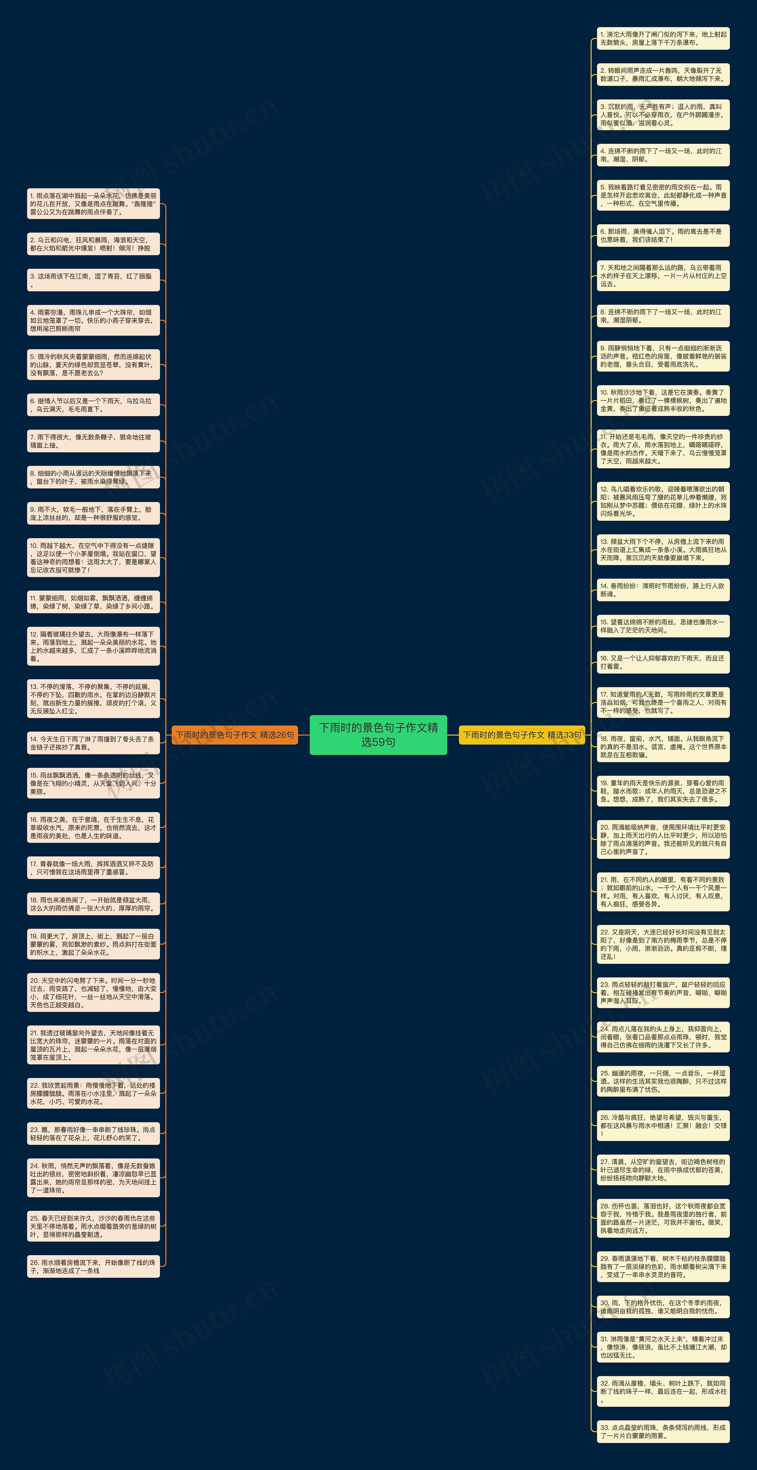 20. 雨滴能吸纳声音,使周围环境比平时更安静,加上雨天出行的人比平时更少,所以恐怕除了雨点滴落的声音。我还能听见的就只有自己心里的声音了。