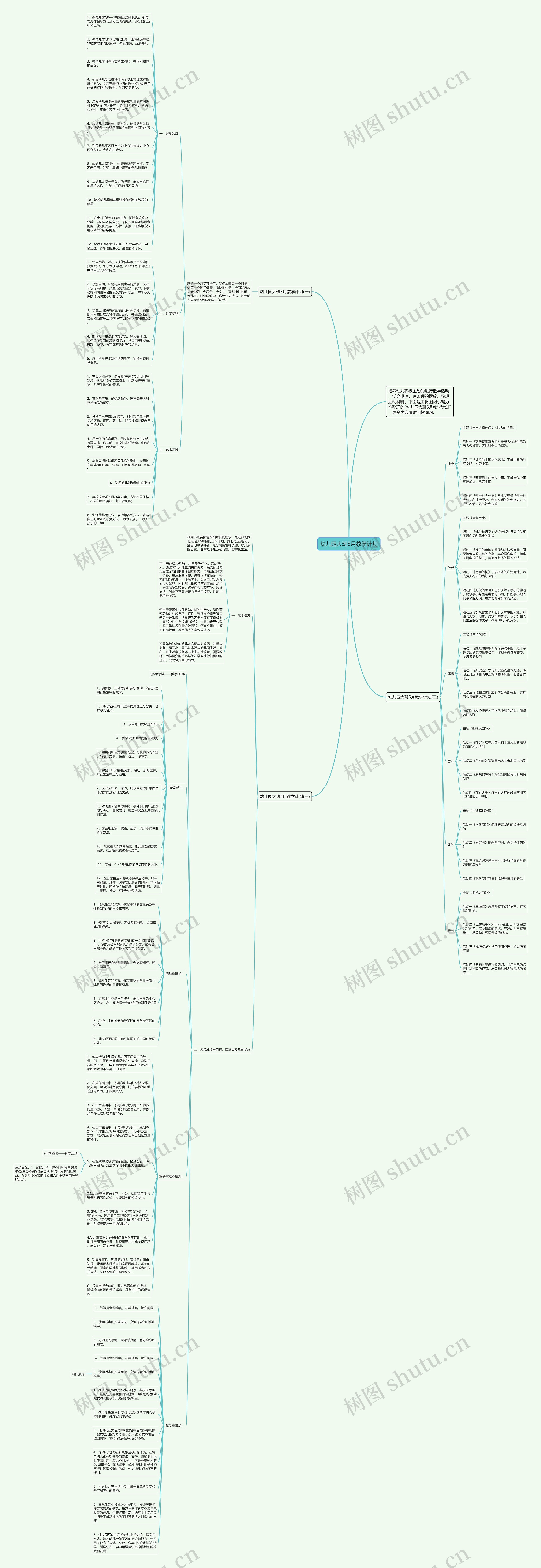 1、教学活动中引导幼儿对周围环境中的数、量、形、时间和空间等现象产生兴趣,建构初步的数概念,并学习用简单的数学方法解决生活和游戏中某些简单的问题。