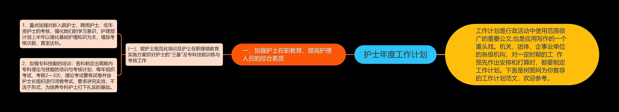 树图思维导图提供《护士年度工作计划》在线思维导图免费制作,点击“编辑”按钮,可对《护士年度工作计划》进行在线思维导图编辑,本思维导图属于思维导图模板主题,文件编号是:d20d6221d742423c7592fa0fc1d6c13c