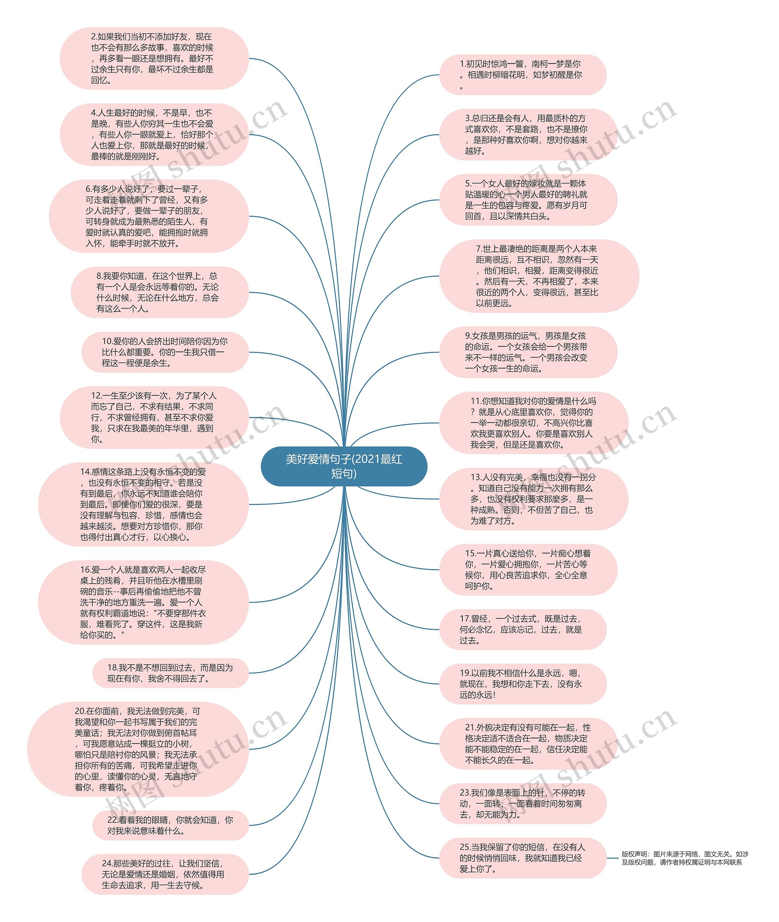 树图思维导图提供《美好爱情句子(2021最红短句)》在线思维导图免费制作,点击“编辑”按钮,可对《美好爱情句子(2021最红短句)》进行在线思维导图编辑,本思维导图属于思维导图模板主题,文件编号是:37b5dc7603e3498c0f9c468dfa6d430a