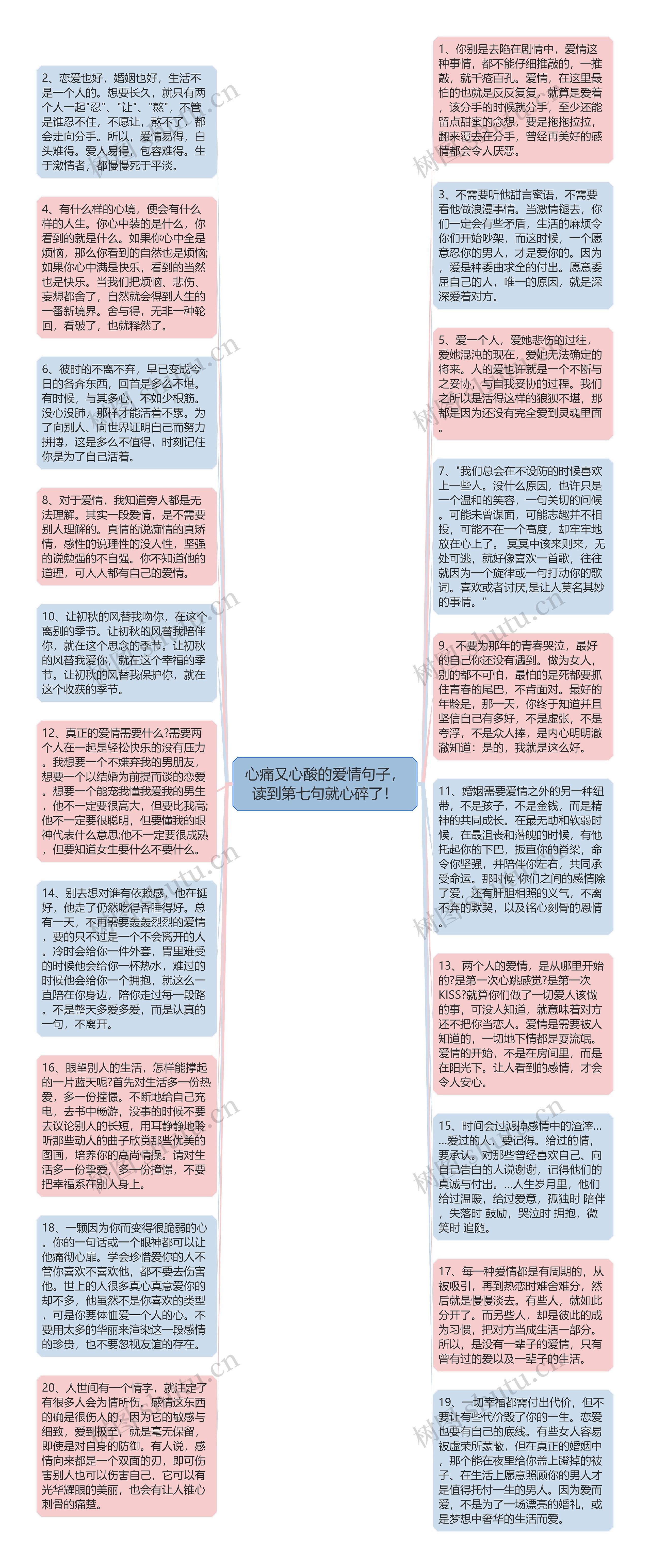 20、人世间有一个情字,就注定了有很多人会为情所伤。感情这东西的确是很伤人的,因为它的敏感与细致,爱到极至,就是毫无保留,即使是对自身的防御。有人说,感情向来都是一个双面的刃,即可伤害别人也可以伤害自己,它可以有光华耀眼的美丽,也会有让人锥心刺骨的痛楚。