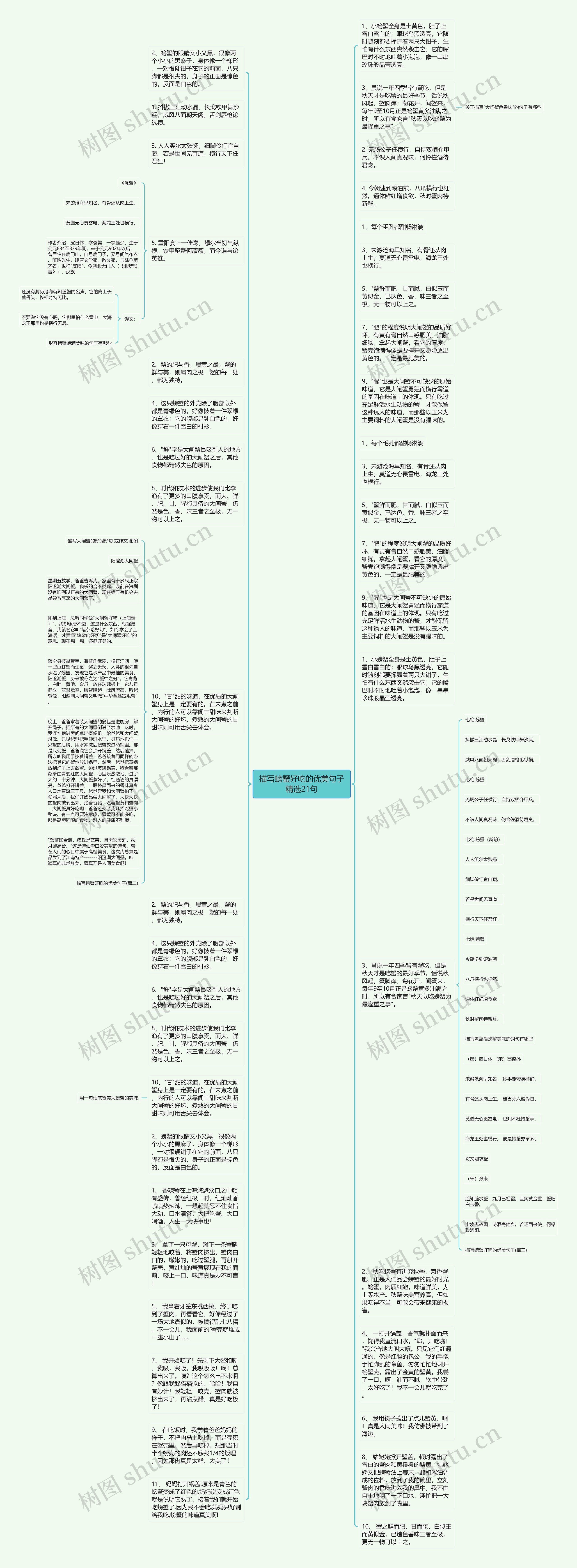 9、 在吃饭时,我学着爸爸妈妈的样子,不把肉马上吃掉,而是存积在蟹壳里,然后再吃掉。想那当时半个螃壳的肉还不够我1/4的饭哩,因为那肉真是太鲜、太美了!