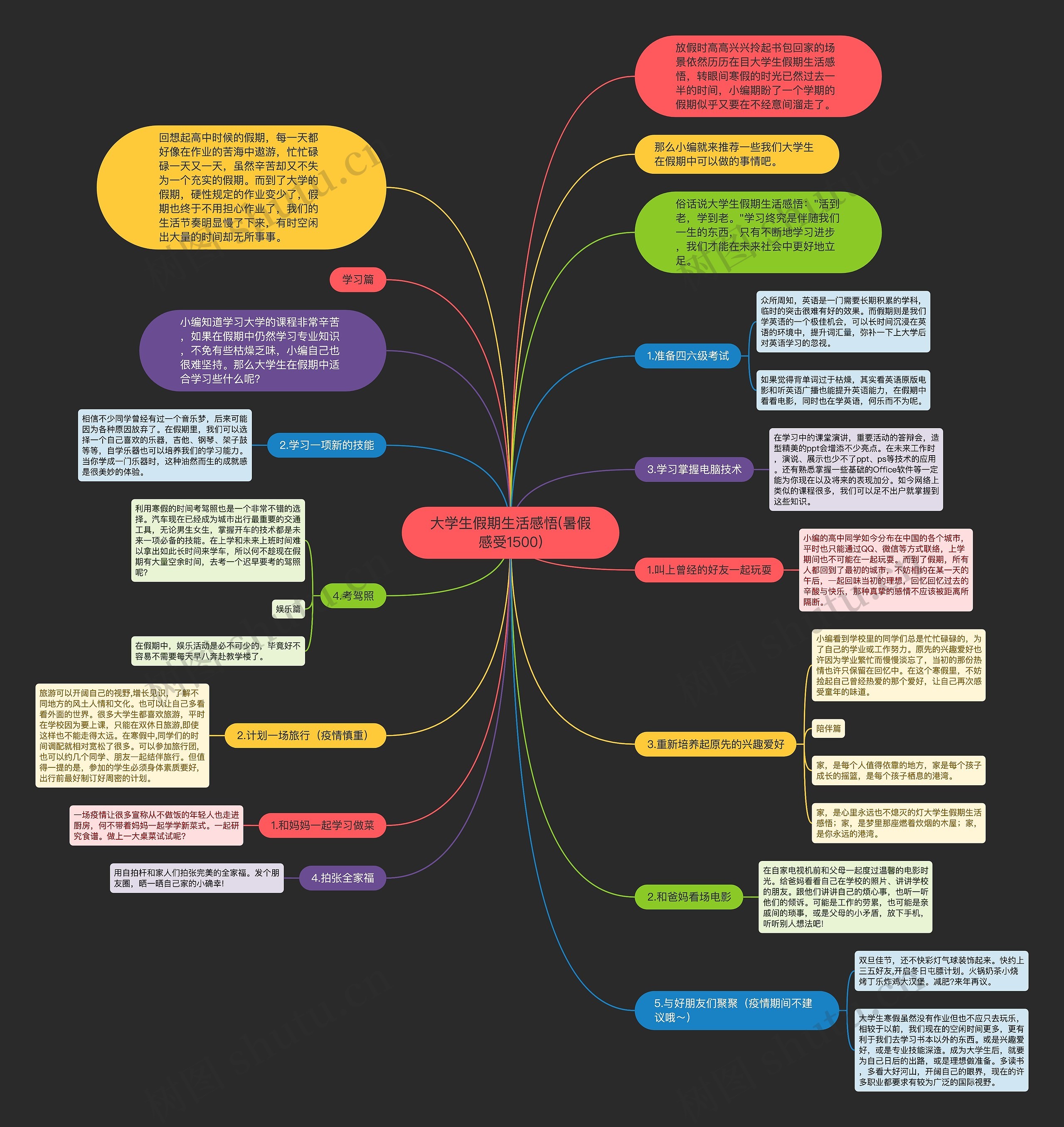 树图思维导图提供《大学生假期生活感悟(暑假感受1500)》在线思维导图免费制作,点击“编辑”按钮,可对《大学生假期生活感悟(暑假感受1500)》进行在线思维导图编辑,本思维导图属于思维导图模板主题,文件编号是:c915ca558ac53bdea6b3e2a6d023b28d