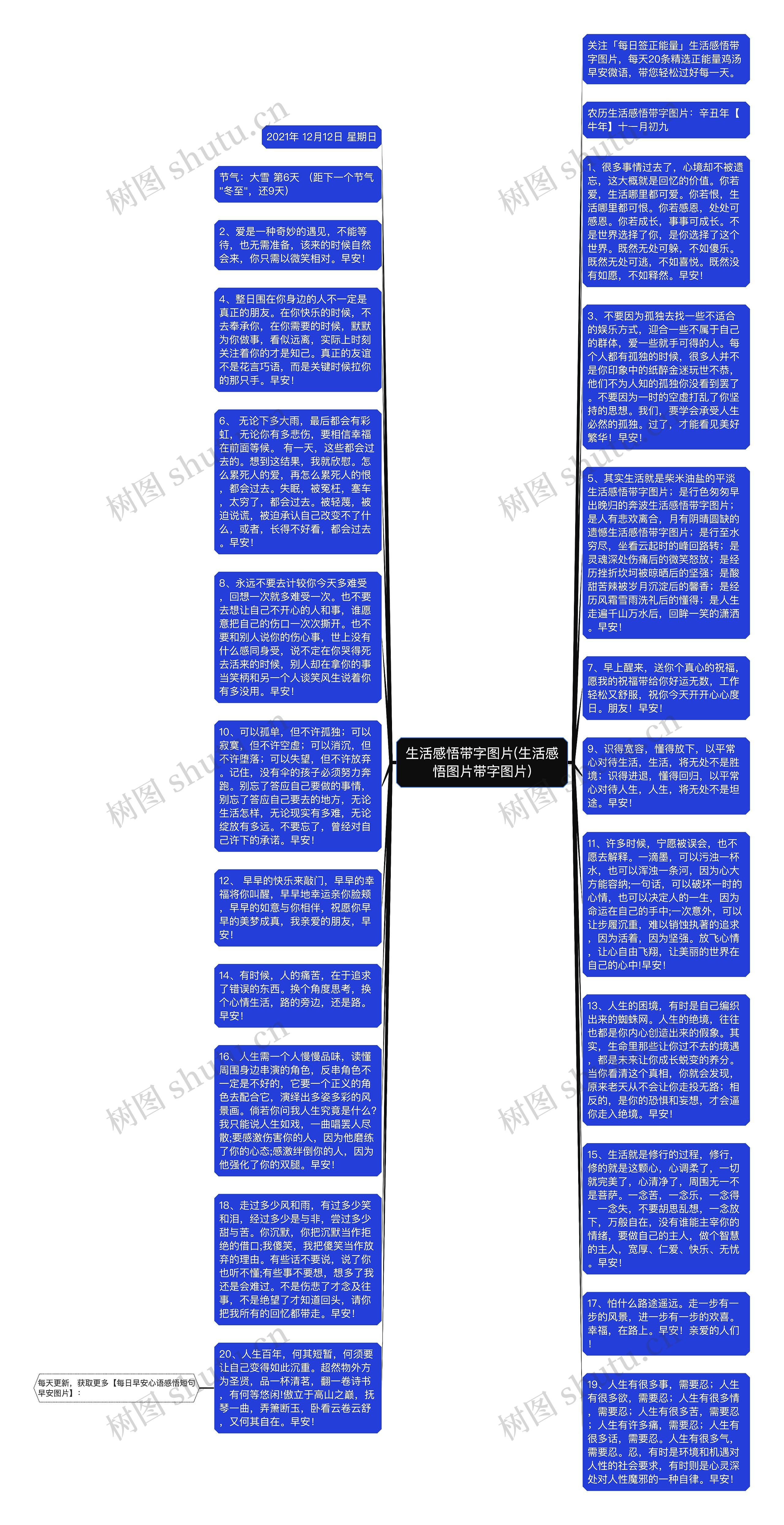 5、其实生活就是柴米油盐的平淡生活感悟带字图片;是行色匆匆早出晚归的奔波生活感悟带字图片;是人有悲欢离合,月有阴晴圆缺的遗憾生活感悟带字图片;是行至水穷尽,坐看云起时的峰回路转;是灵魂深处伤痛后的微笑怒放;是经历挫折坎坷被晾晒后的坚强;是酸甜苦辣被岁月沉淀后的馨香;是经历风霜雪雨洗礼后的懂得;是人生走遍千山万水后,回眸一笑的潇洒。早安!