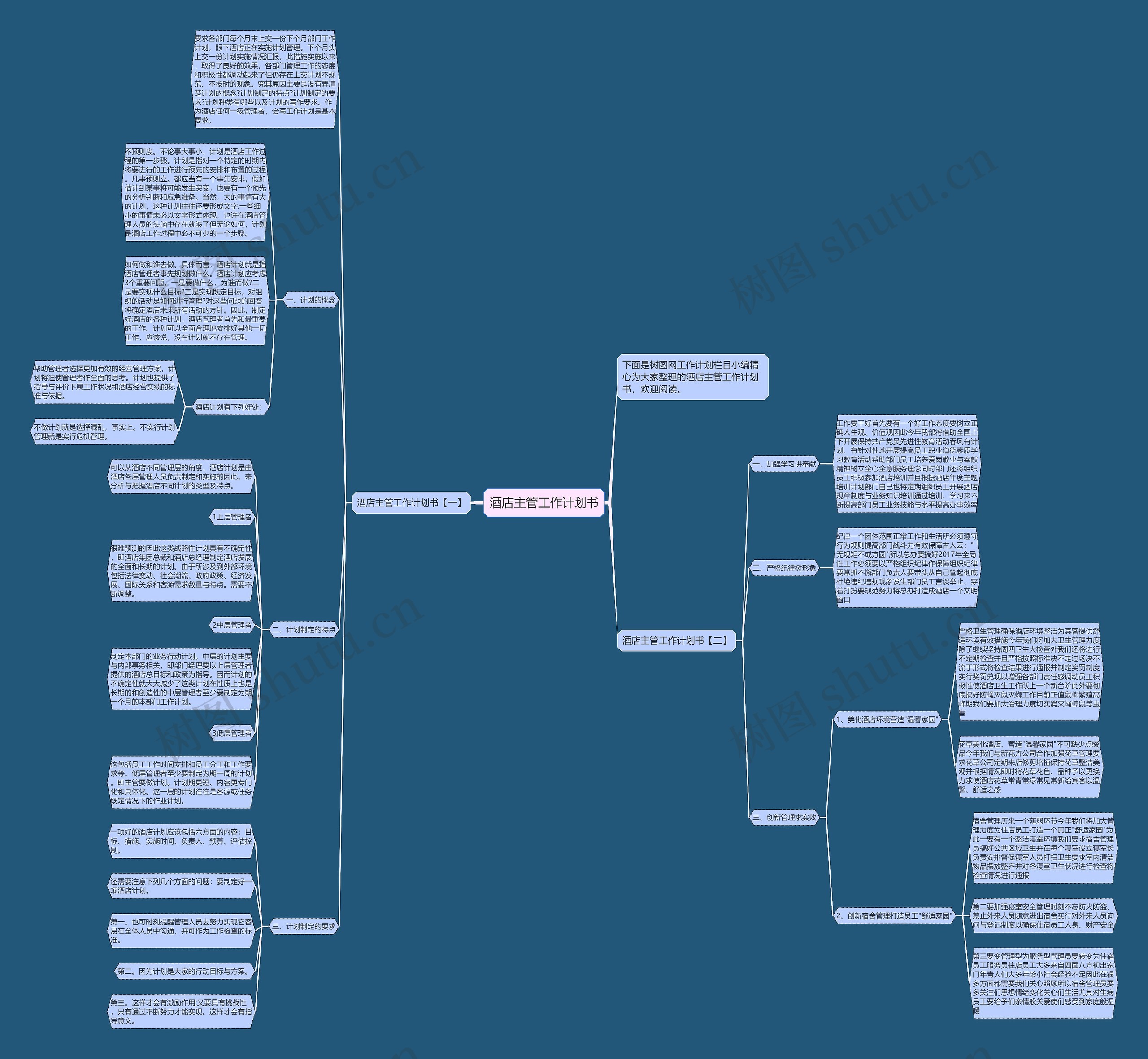 树图思维导图提供《酒店主管工作计划书》在线思维导图免费制作,点击“编辑”按钮,可对《酒店主管工作计划书》进行在线思维导图编辑,本思维导图属于思维导图模板主题,文件编号是:7a6d01a9a6ae845fa50f4700ba020f7c