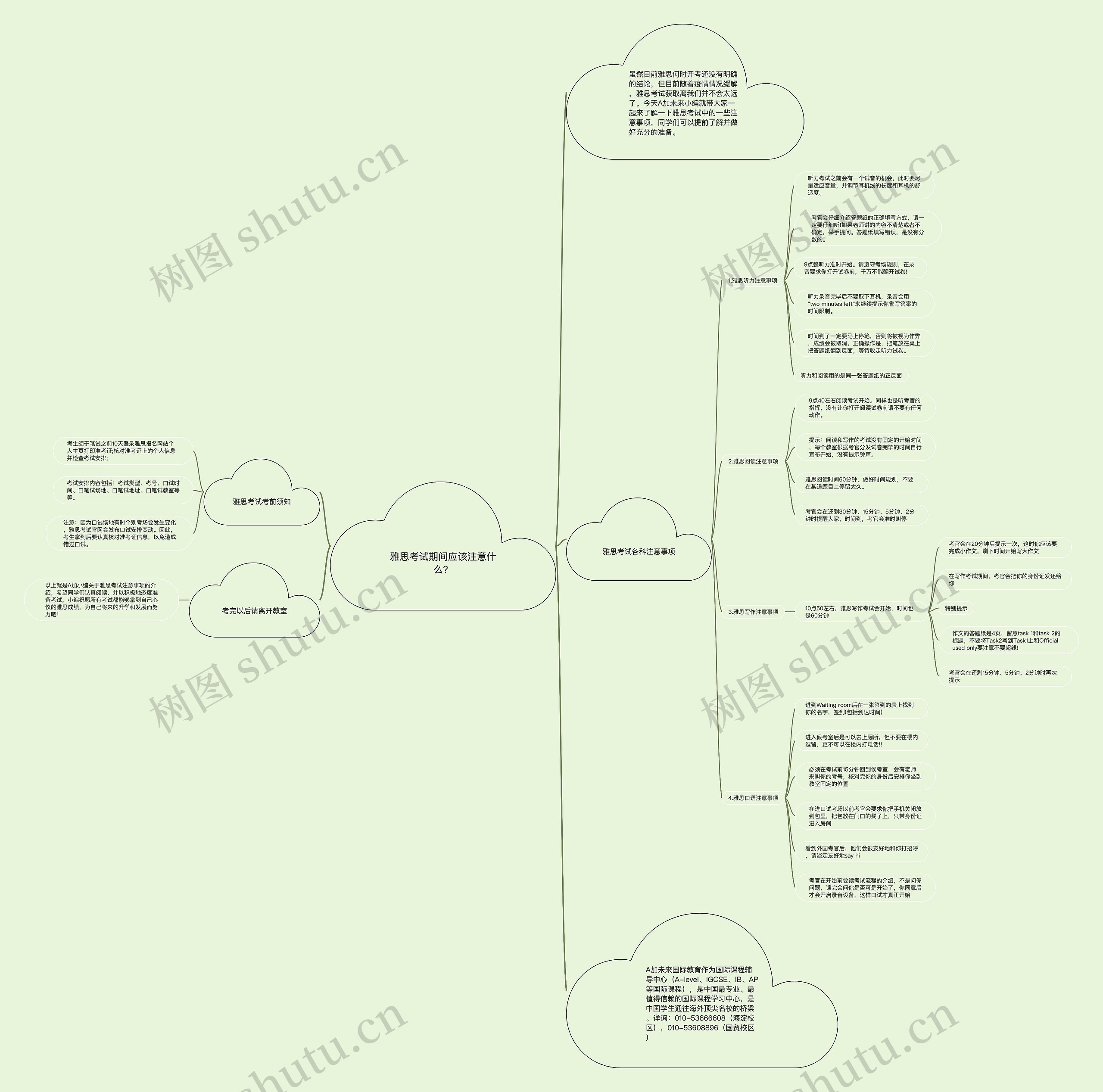 树图思维导图提供《雅思考试期间应该注意什么?》在线思维导图免费制作,点击“编辑”按钮,可对《雅思考试期间应该注意什么?》进行在线思维导图编辑,本思维导图属于思维导图模板主题,文件编号是:3be25d885662ea4ad2f3659c350babce