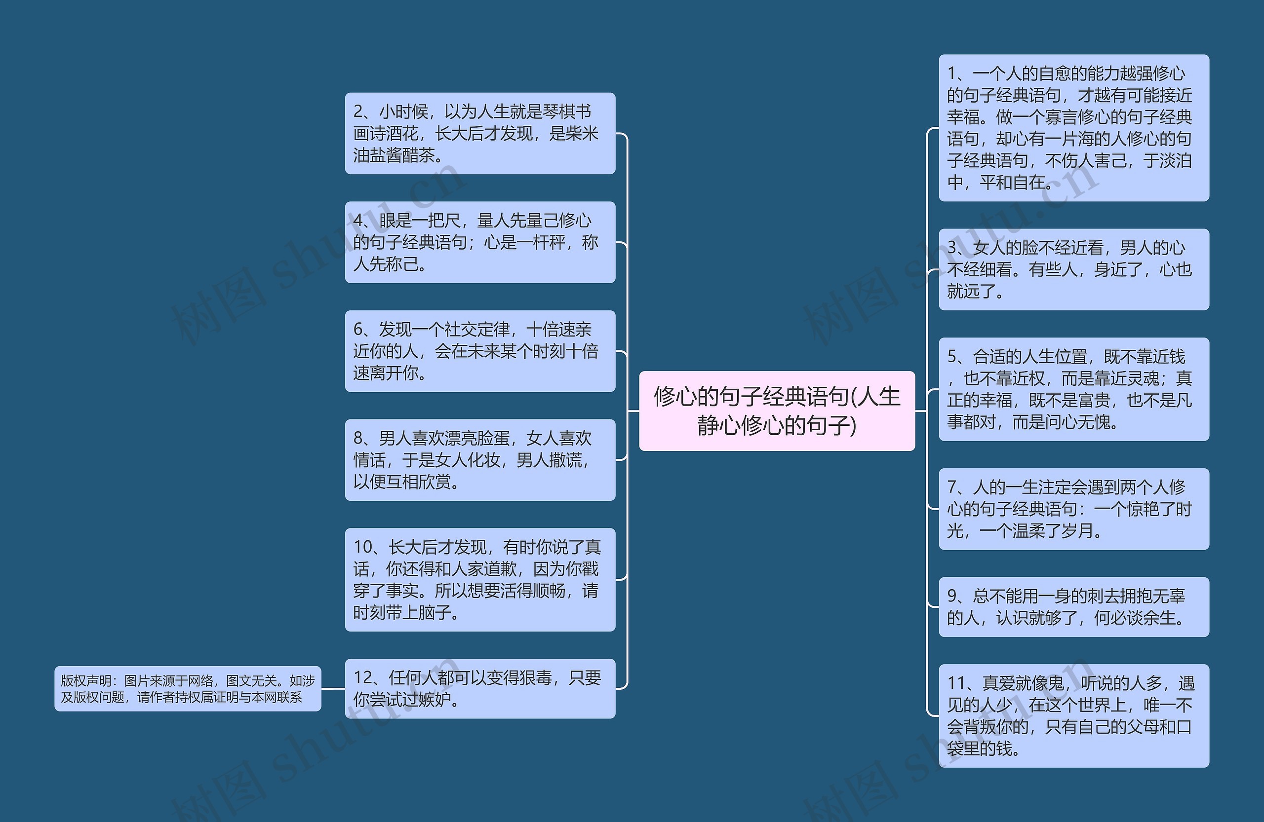 树图思维导图提供《修心的句子经典语句(人生静心修心的句子)》在线思维导图免费制作,点击“编辑”按钮,可对《修心的句子经典语句(人生静心修心的句子)》进行在线思维导图编辑,本思维导图属于思维导图模板主题,文件编号是:368549cda6e69d15b1ca0f3585ab7e87