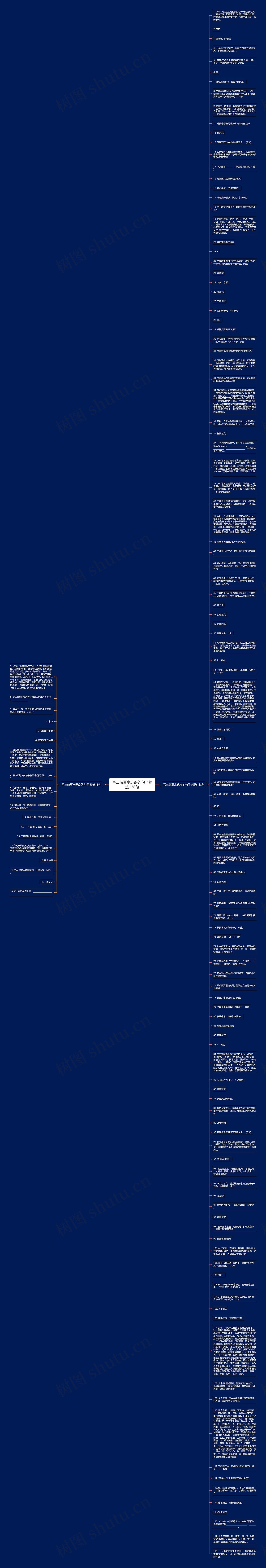 54. 理解性背诵:(1)写山连绵不断(长)的句子:自三峡七百里中,两岸连山,略无阙处(2)写山高峻的句子:重岩叠嶂,隐天蔽日。从侧面烘托山峰陡峭幽邃的一句:自非亭午夜分不见曦月。(3)写水势凶险的句子:夏水襄陵,沿溯阻绝。(4)写水流湍急(水流急速)的句子:朝发白帝,暮到江陵(5)写春冬三峡水的特点的句子:素湍绿潭,回清倒影。(6)表现秋季凄清萧瑟的句子是:林寒涧肃,高猿长啸,属引凄异空谷传响,哀转久绝(7)引用渔歌反衬三峡深秋清幽寂静的句子是:巴东三峡巫峡长,猿鸣三声泪沾裳。(引用渔歌作用:进一步突出三峡山高水长的特点,同时渲染三峡秋季肃杀、凄凉气氛,也暗含对劳动人民的同情。)