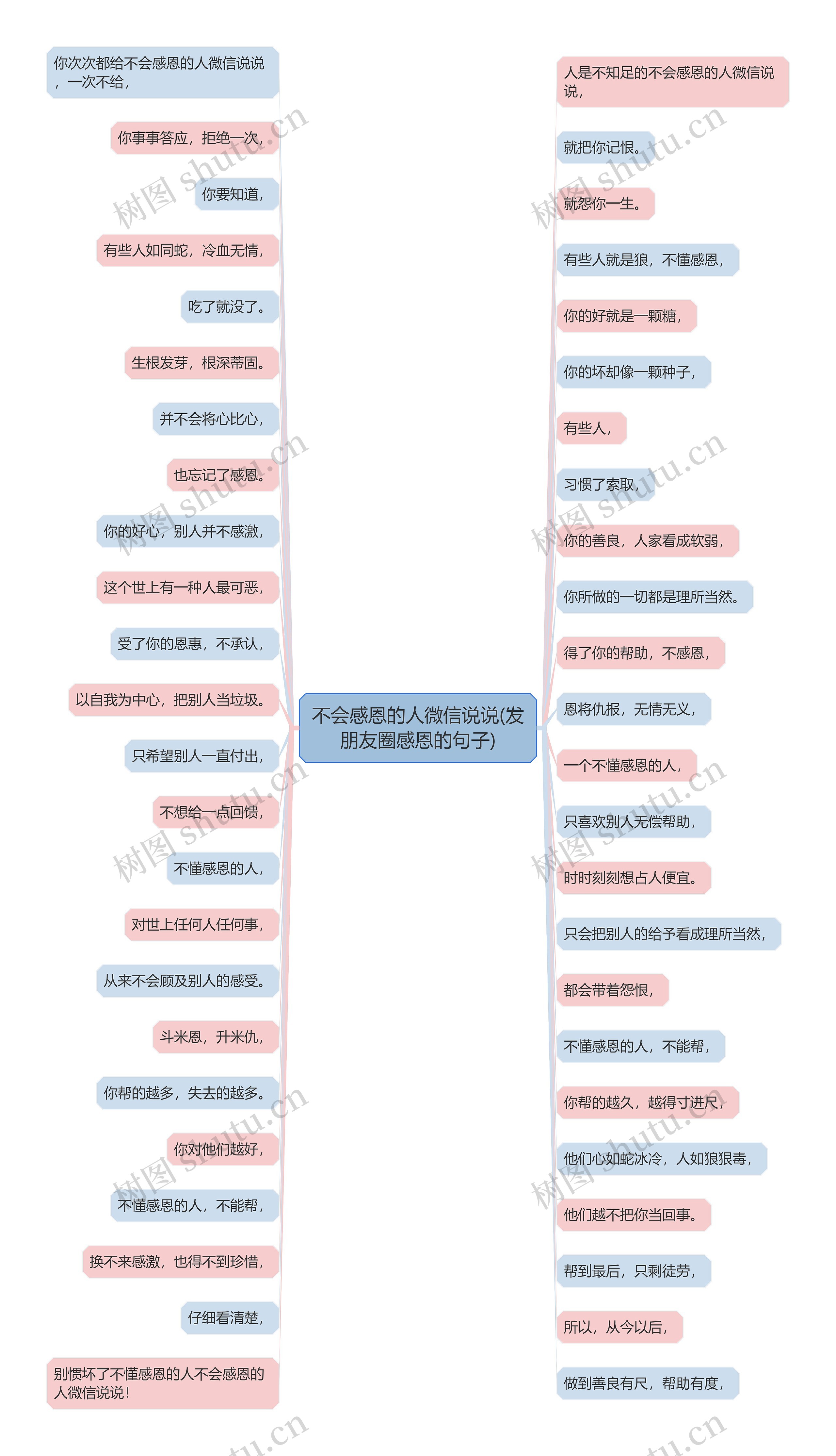 树图思维导图提供《不会感恩的人微信说说(发朋友圈感恩的句子)》在线思维导图免费制作,点击“编辑”按钮,可对《不会感恩的人微信说说(发朋友圈感恩的句子)》进行在线思维导图编辑,本思维导图属于思维导图模板主题,文件编号是:d08941adfb81d116eb74b81ecc868e32