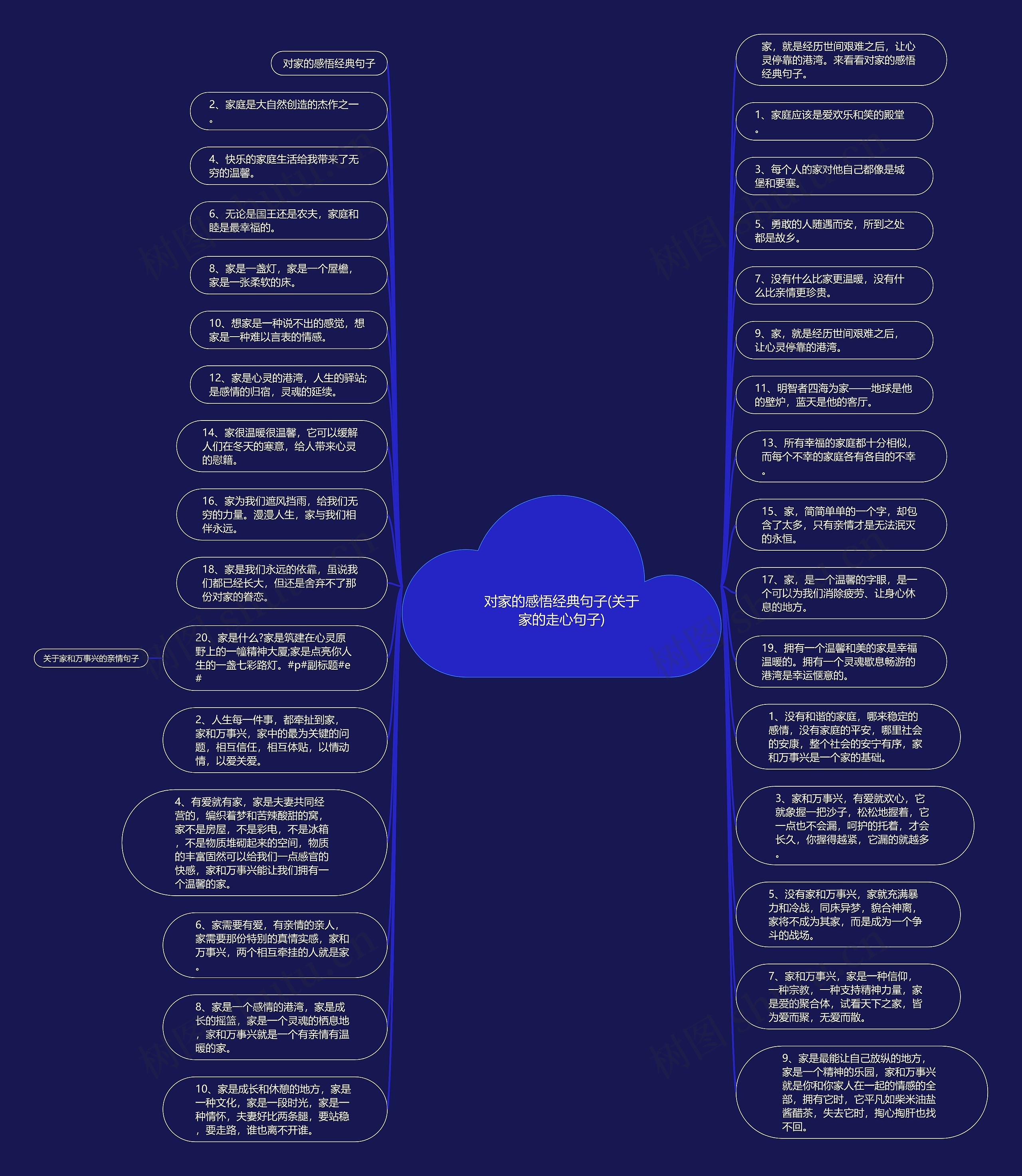 19、拥有一个温馨和美的家是幸福温暖的。拥有一个灵魂歇息畅游的港湾是幸运惬意的。