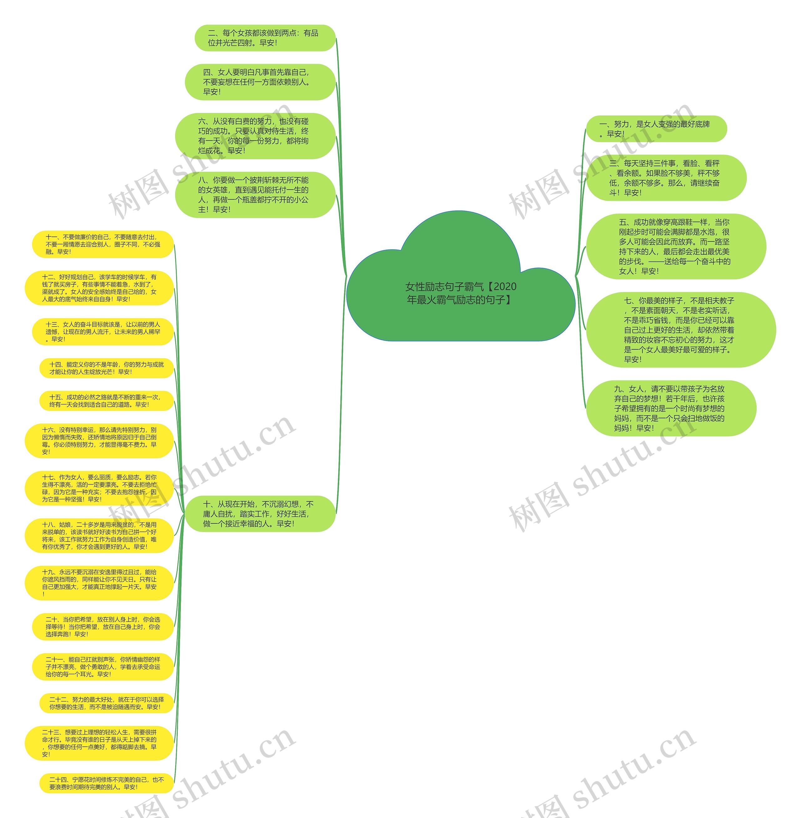 十七、作为女人,要么丽质,要么励志。若你生得不漂亮,活的一定要漂亮。不要去拒绝忙碌,因为它是一种充实;不要去抱怨挫折,因为它是一种坚强!早安!