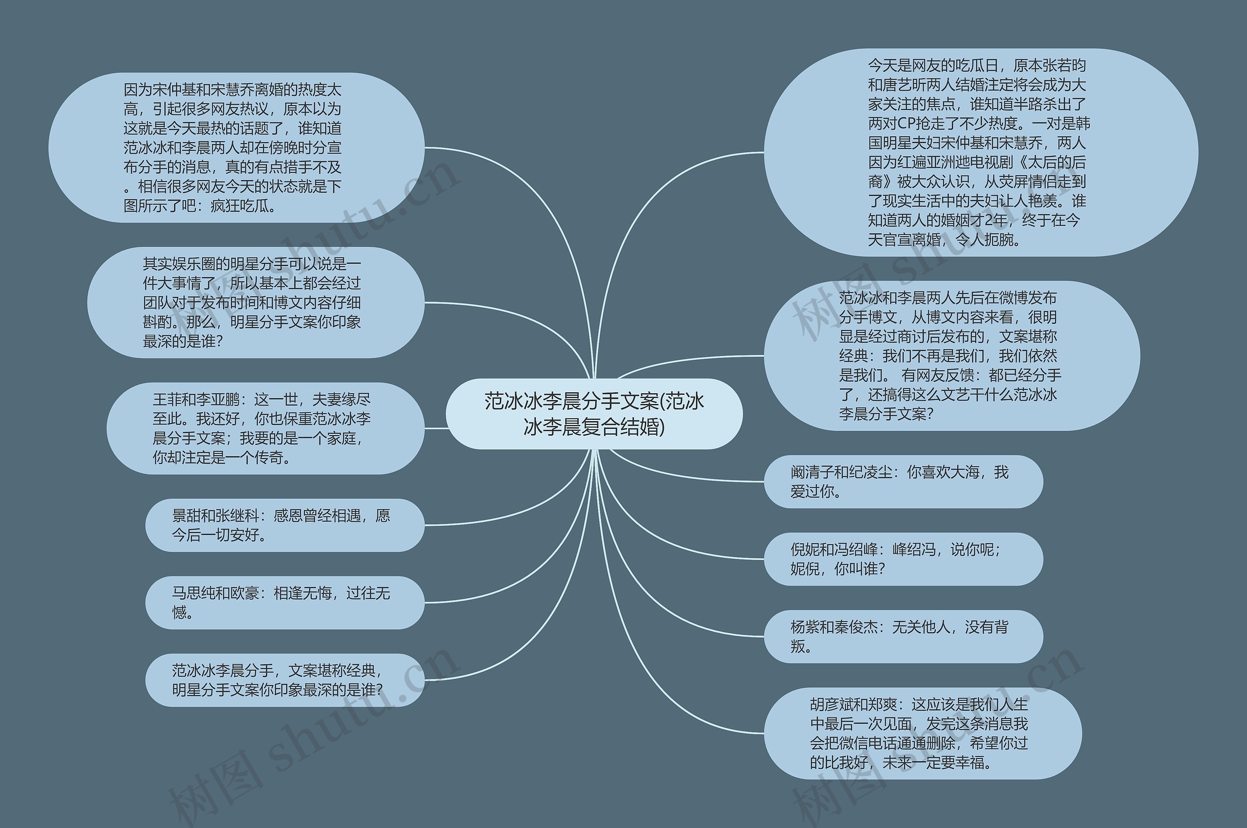树图思维导图提供《范冰冰李晨分手文案(范冰冰李晨复合结婚)》在线思维导图免费制作,点击“编辑”按钮,可对《范冰冰李晨分手文案(范冰冰李晨复合结婚)》进行在线思维导图编辑,本思维导图属于思维导图模板主题,文件编号是:7197e8b74b52763e5f5bf52dab339a62