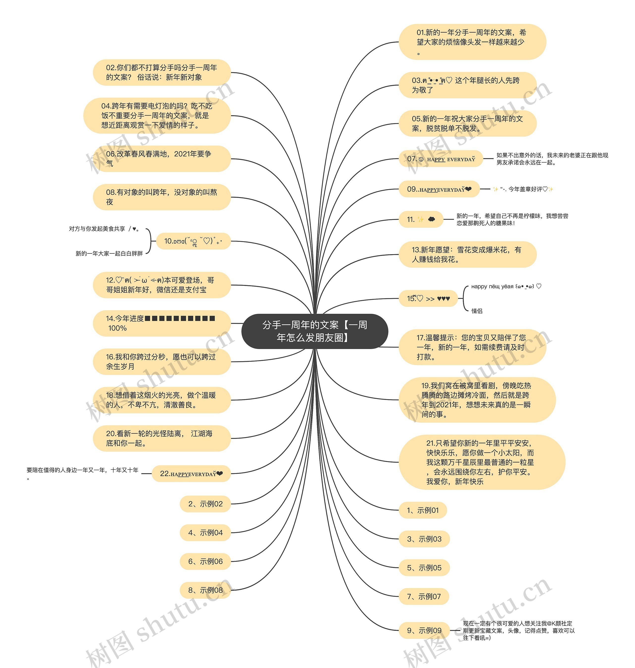 树图思维导图提供《分手一周年的文案【一周年怎么发朋友圈】》在线思维导图免费制作,点击“编辑”按钮,可对《分手一周年的文案【一周年怎么发朋友圈】》进行在线思维导图编辑,本思维导图属于思维导图模板主题,文件编号是:43dc79119bfdeb023083c55d8acfb1dd