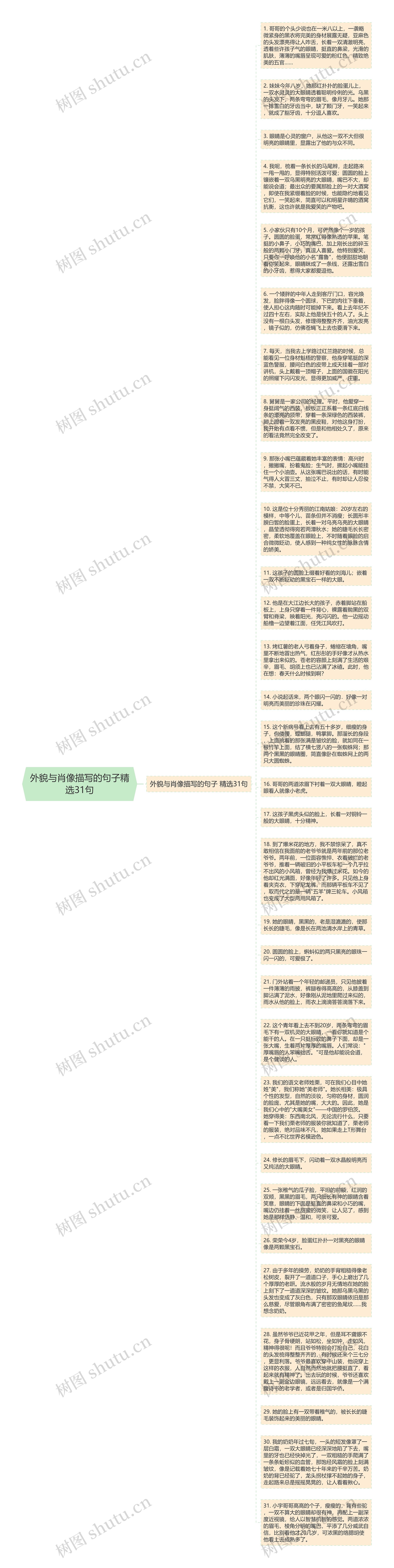 23. 我们的语文老师姓栗,可在我们心目中她姓"美",我们称她"美老师"。她长相美:极具个性的发型,自然的淡妆,匀称的身材,圆润的脸庞,尤其是她的嘴,大大的。因此,她是我们心中的"大嘴美女"——中国的罗伯茨。她穿得美:东西南北风,无论流行什么,只要看一下我们栗老师的服装你就知道了,栗老师的服装,绝对品味不凡,她如果走上T形舞台,一点不比世界名模逊色。