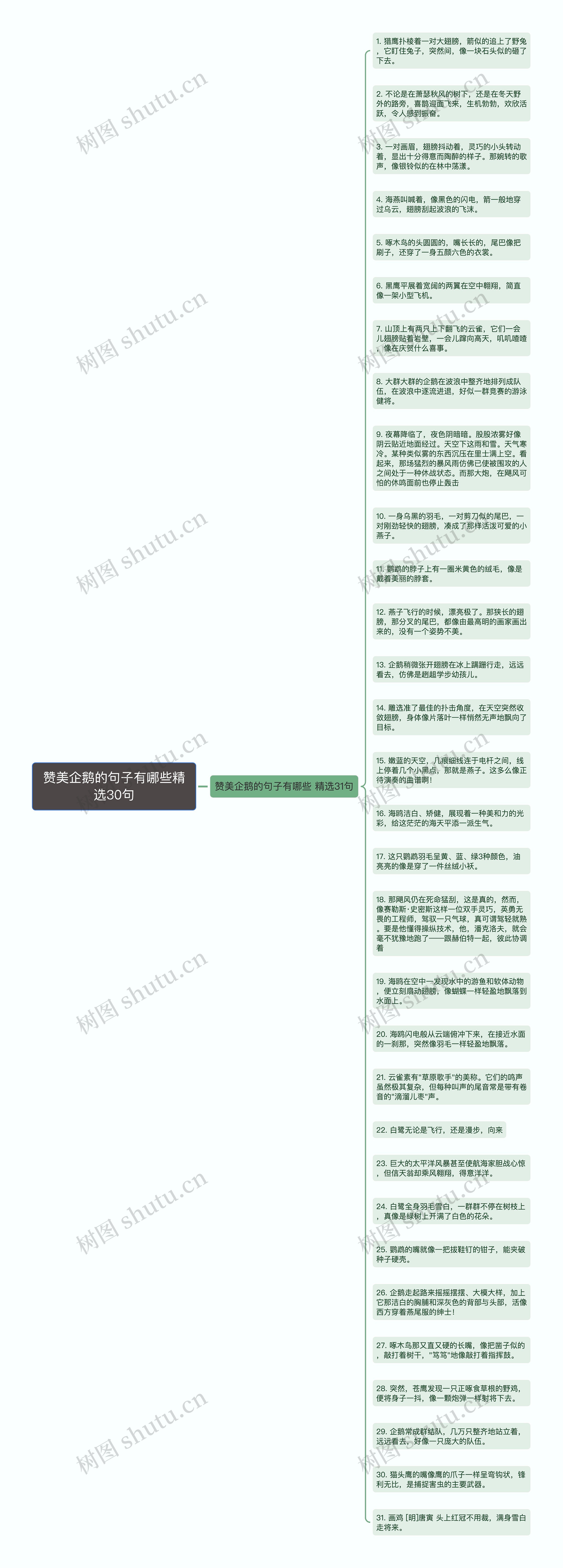 24. 白鹭全身羽毛雪白,一群群不停在树枝上,真像是绿树上开满了白色的花朵。