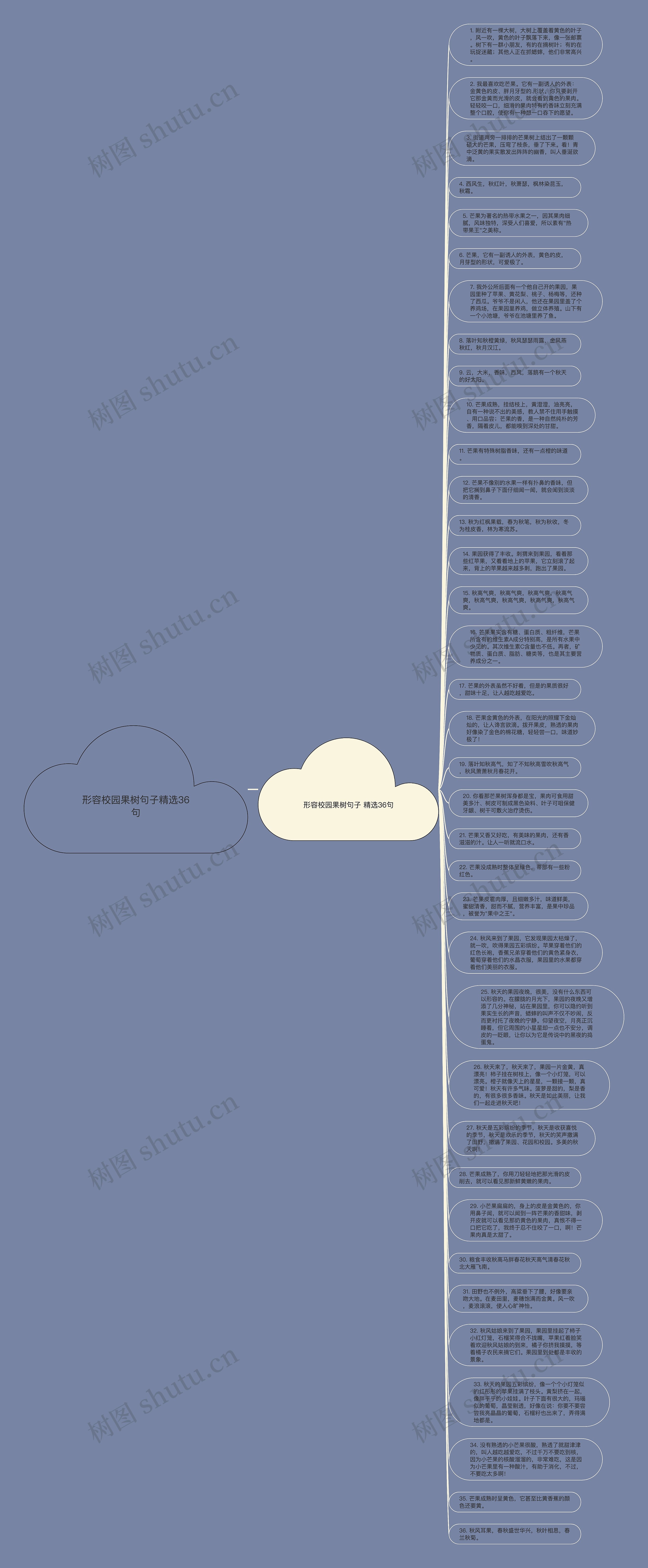 33. 秋天的果园五彩缤纷,像一个个小灯笼似的红彤彤的苹果挂满了枝头。黄梨挤在一起,像胖乎乎的小娃娃。叶子下面有很大的,玛瑙似的葡萄,晶莹剔透,好像在说:你要不要尝尝我亮晶晶的葡萄,石榴籽也出来了,弄得满地都是。