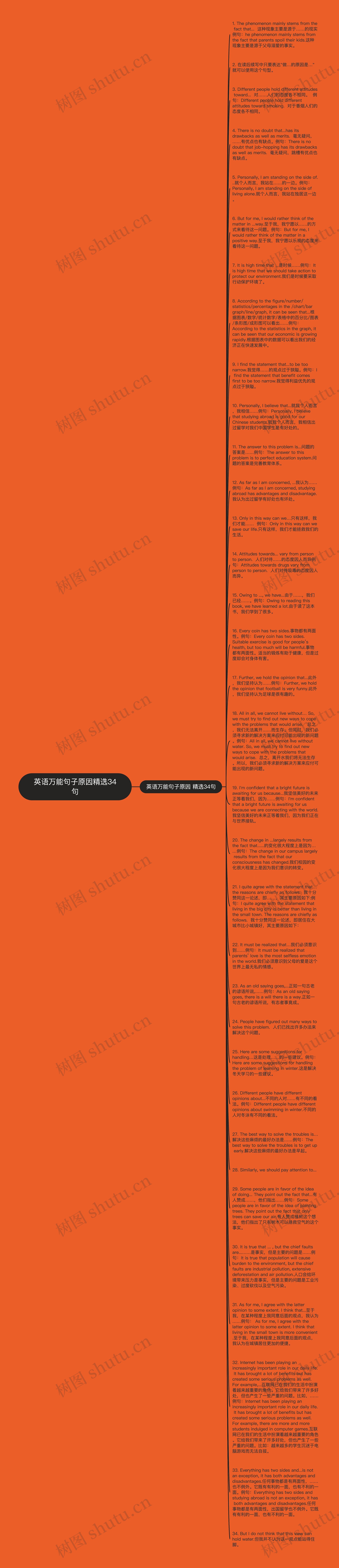21. I quite agree with the statement that… the reasons are chiefly as follows. 我十分赞同这一论述,即……,其主要原因如下:例句:I quite agree with the statement that living in the big city is better than living in the small town. The reasons are chiefly as follows. 我十分赞同这一论述,即居住在大城市比小城镇好,其主要原因如下: