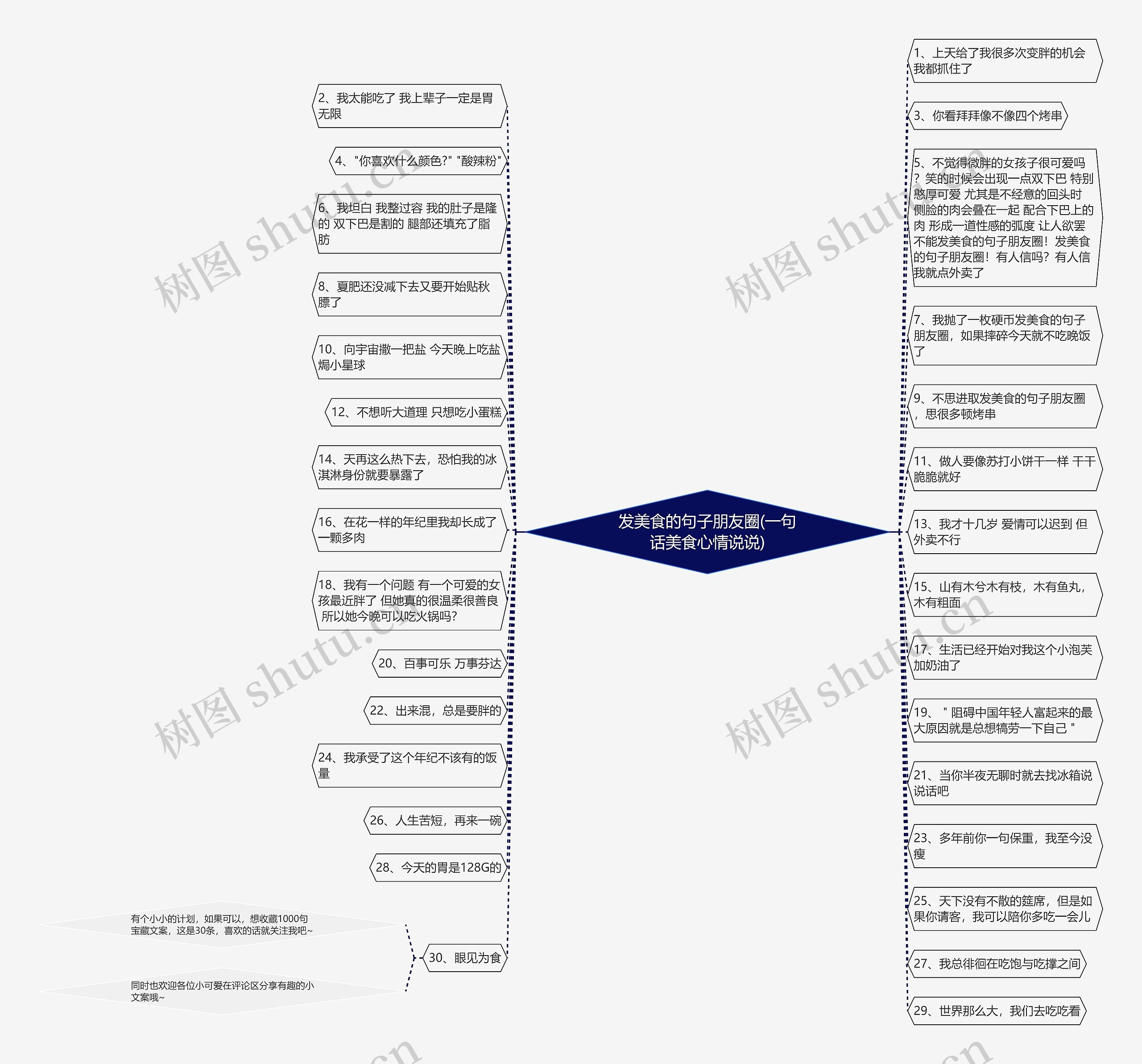 树图思维导图提供《发美食的句子朋友圈(一句话美食心情说说)》在线思维导图免费制作,点击“编辑”按钮,可对《发美食的句子朋友圈(一句话美食心情说说)》进行在线思维导图编辑,本思维导图属于思维导图模板主题,文件编号是:f8188dc2ab13d0cfe73fe4ac2a1235dd