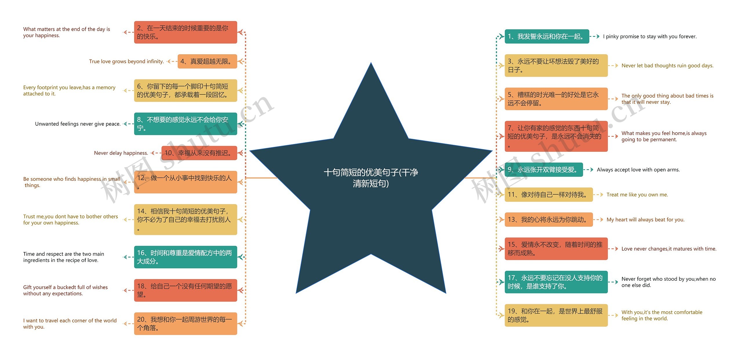 树图思维导图提供《十句简短的优美句子(干净清新短句)》在线思维导图免费制作,点击“编辑”按钮,可对《十句简短的优美句子(干净清新短句)》进行在线思维导图编辑,本思维导图属于思维导图模板主题,文件编号是:d5a631d3e116f48ab51248d0c67f502b