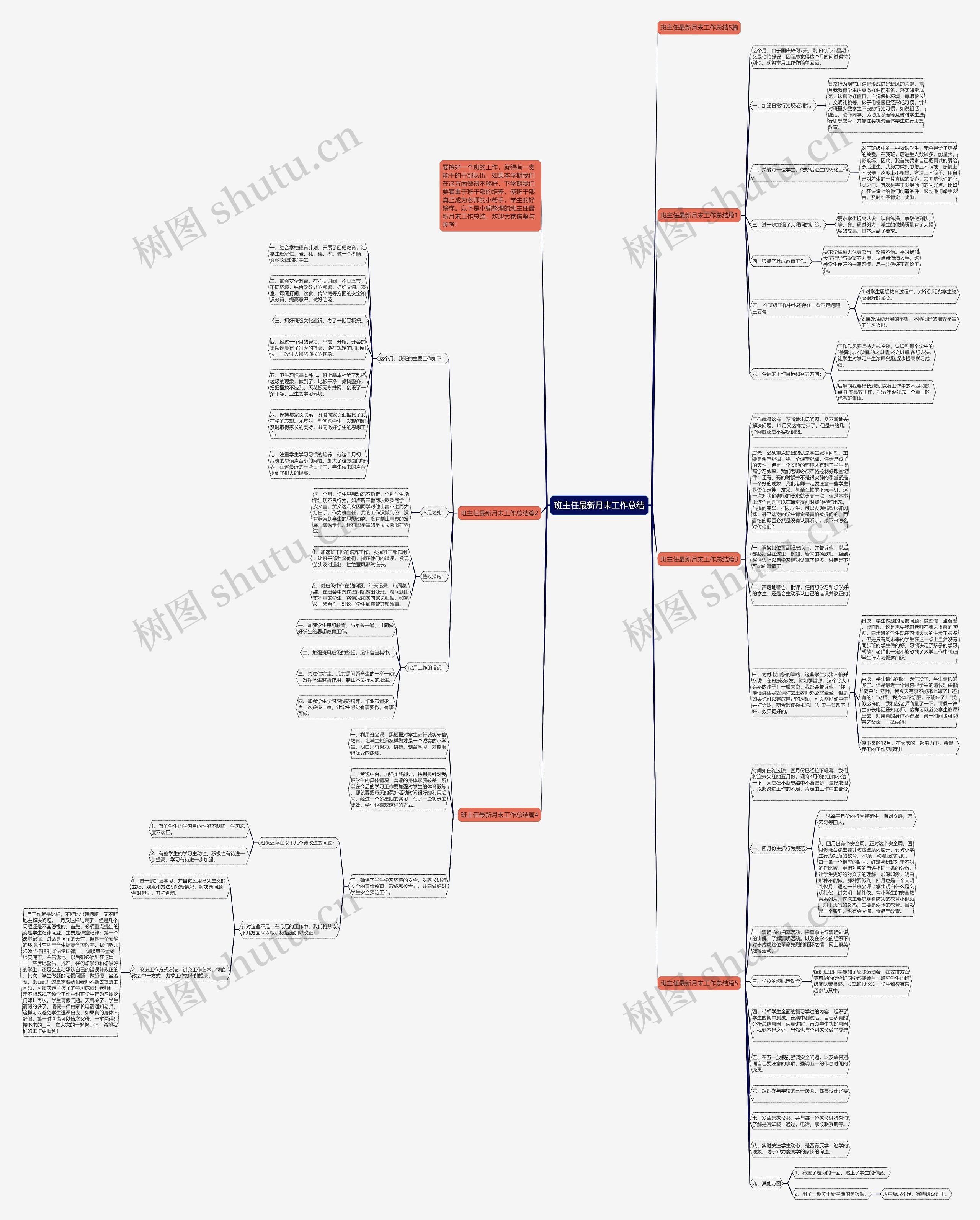 树图思维导图提供《班主任最新月末工作总结》在线思维导图免费制作,点击“编辑”按钮,可对《班主任最新月末工作总结》进行在线思维导图编辑,本思维导图属于思维导图模板主题,文件编号是:472fc04b999301a3d1d802732646fd9c